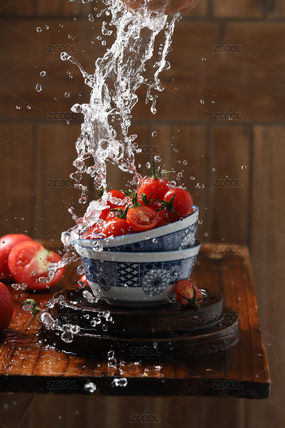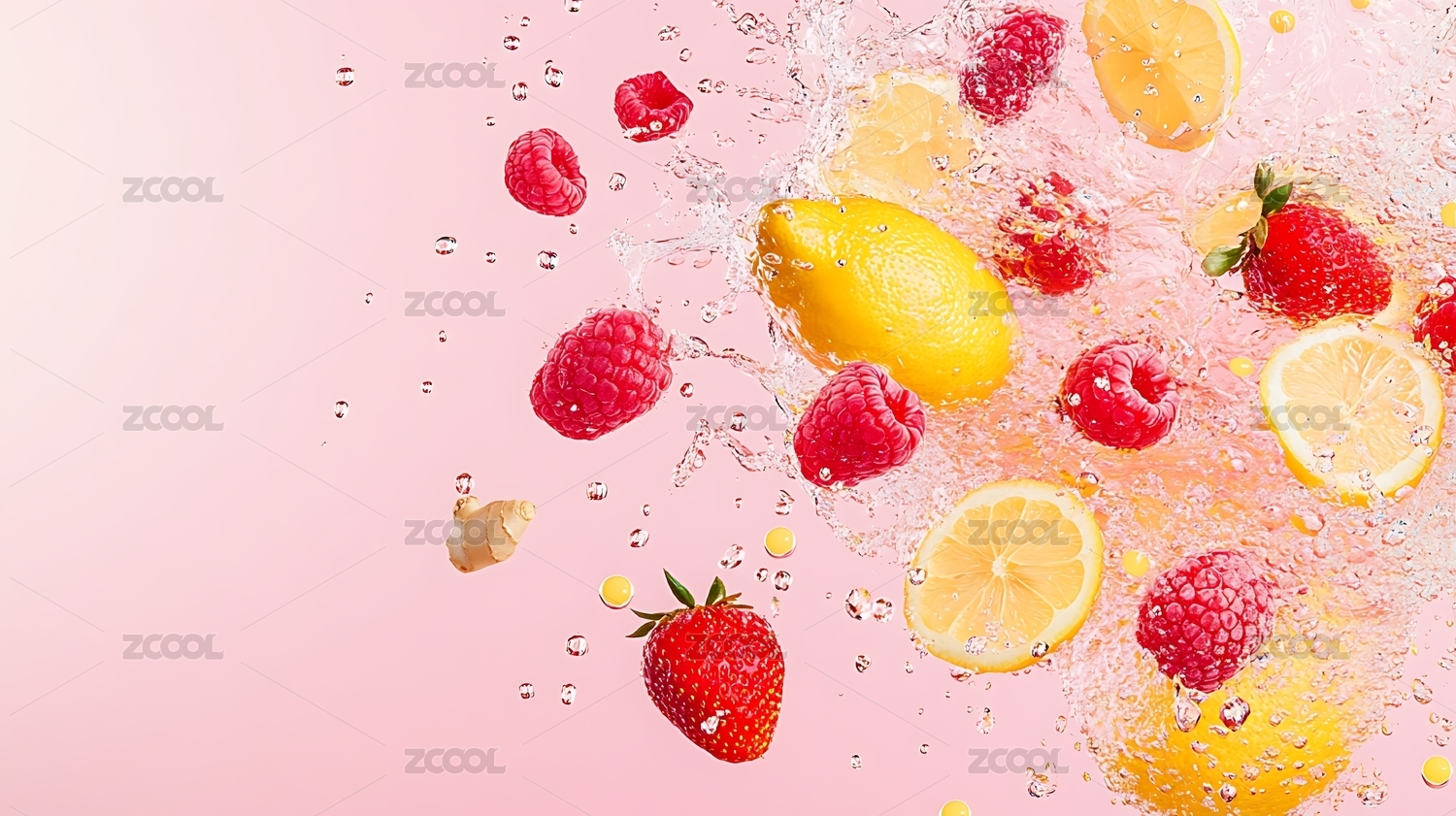 水果在水中飞溅