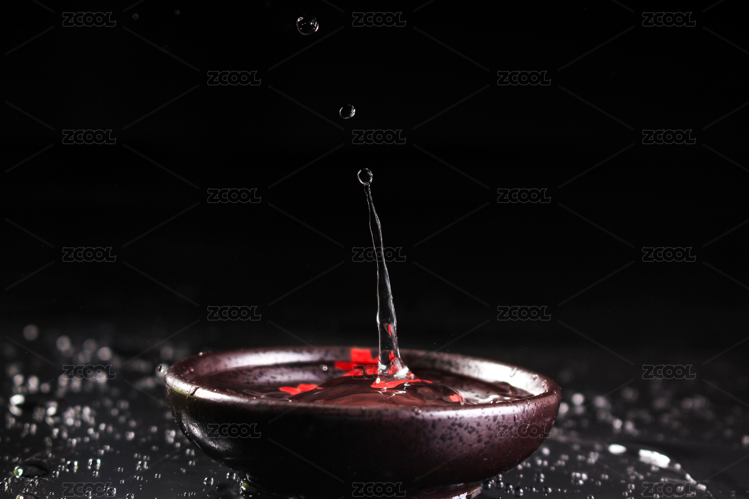 黑色背景下到进酒碗里溅起水滴
