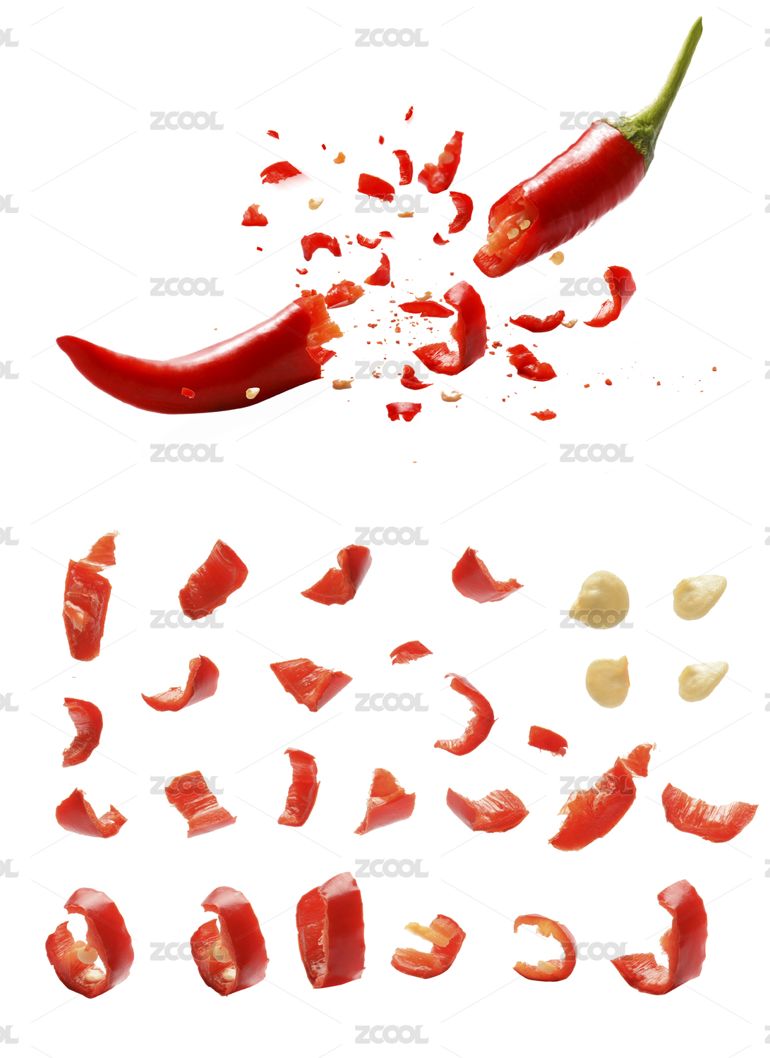 炸开喷溅碎片的红辣椒白底素材