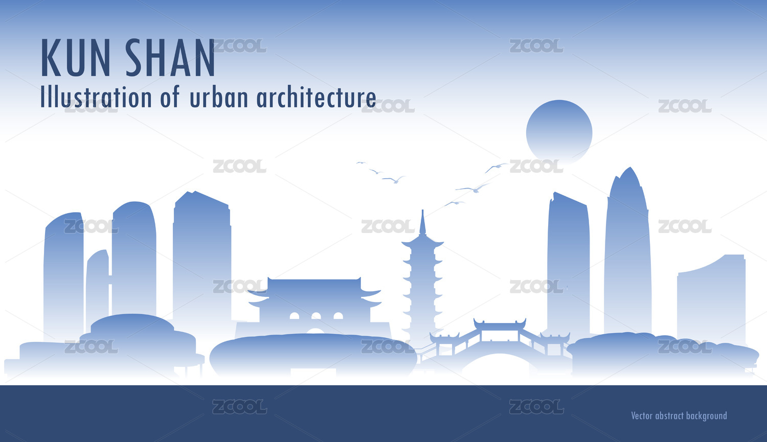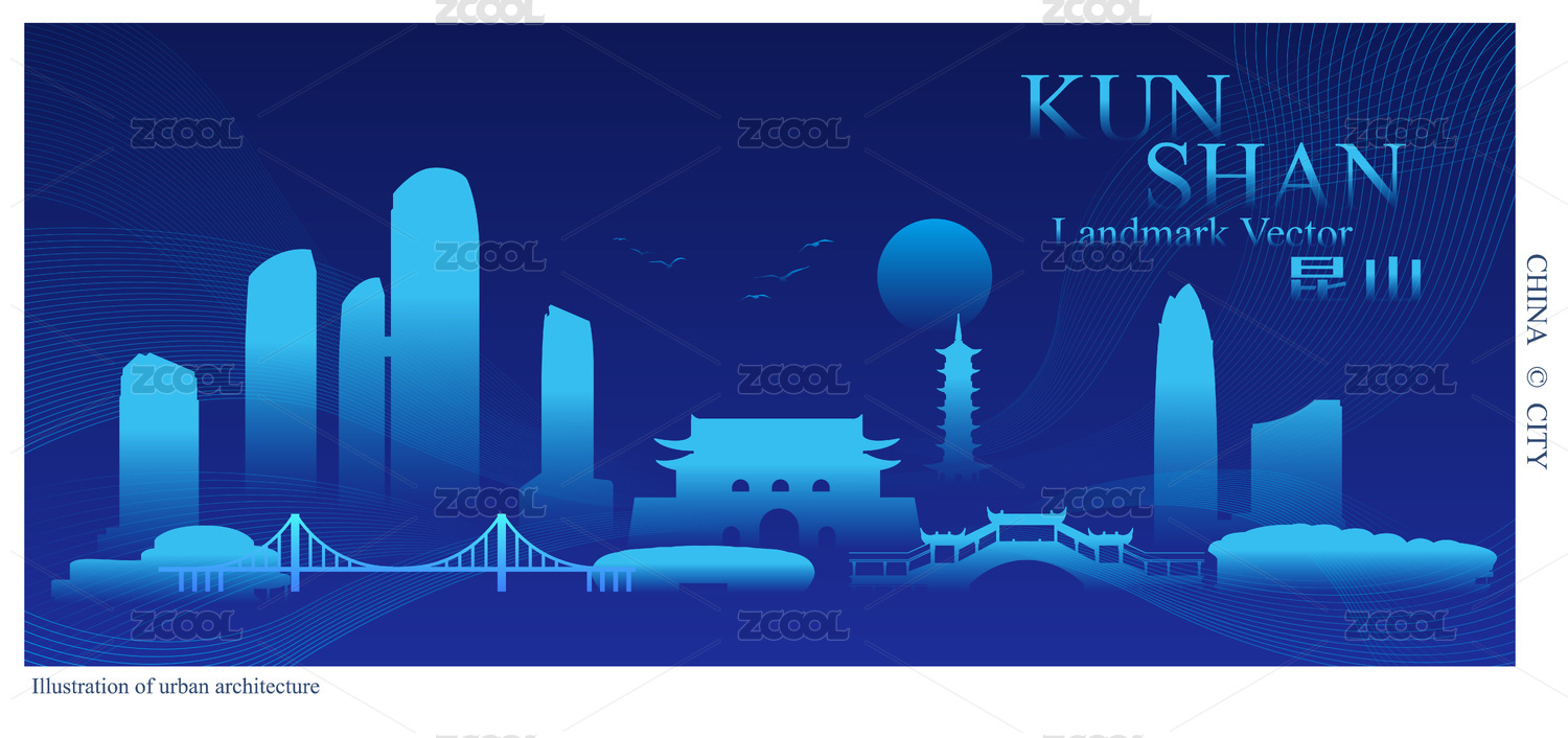 昆山城市地标建筑矢量背景插画