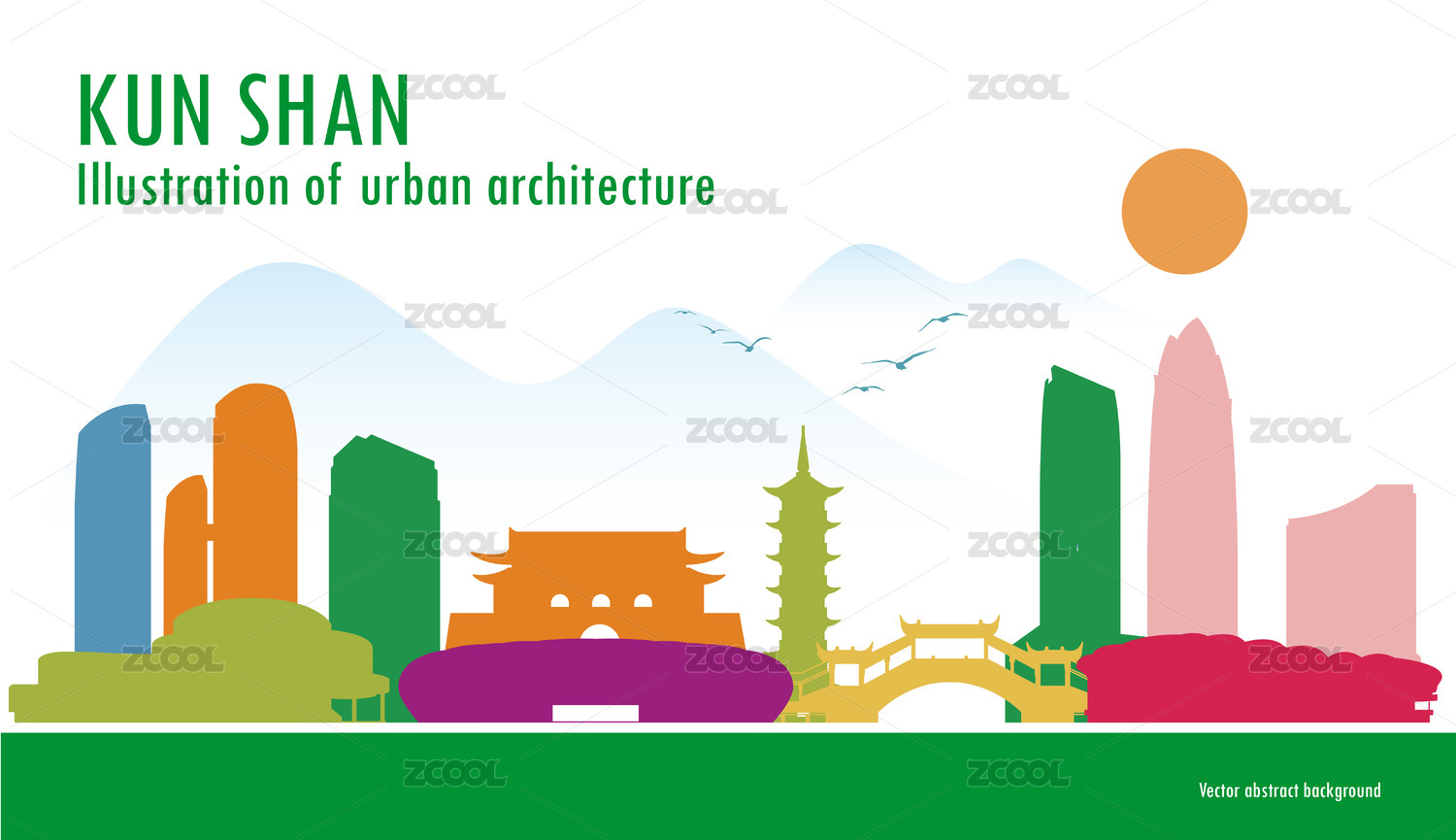 昆山绿色城市建筑插画