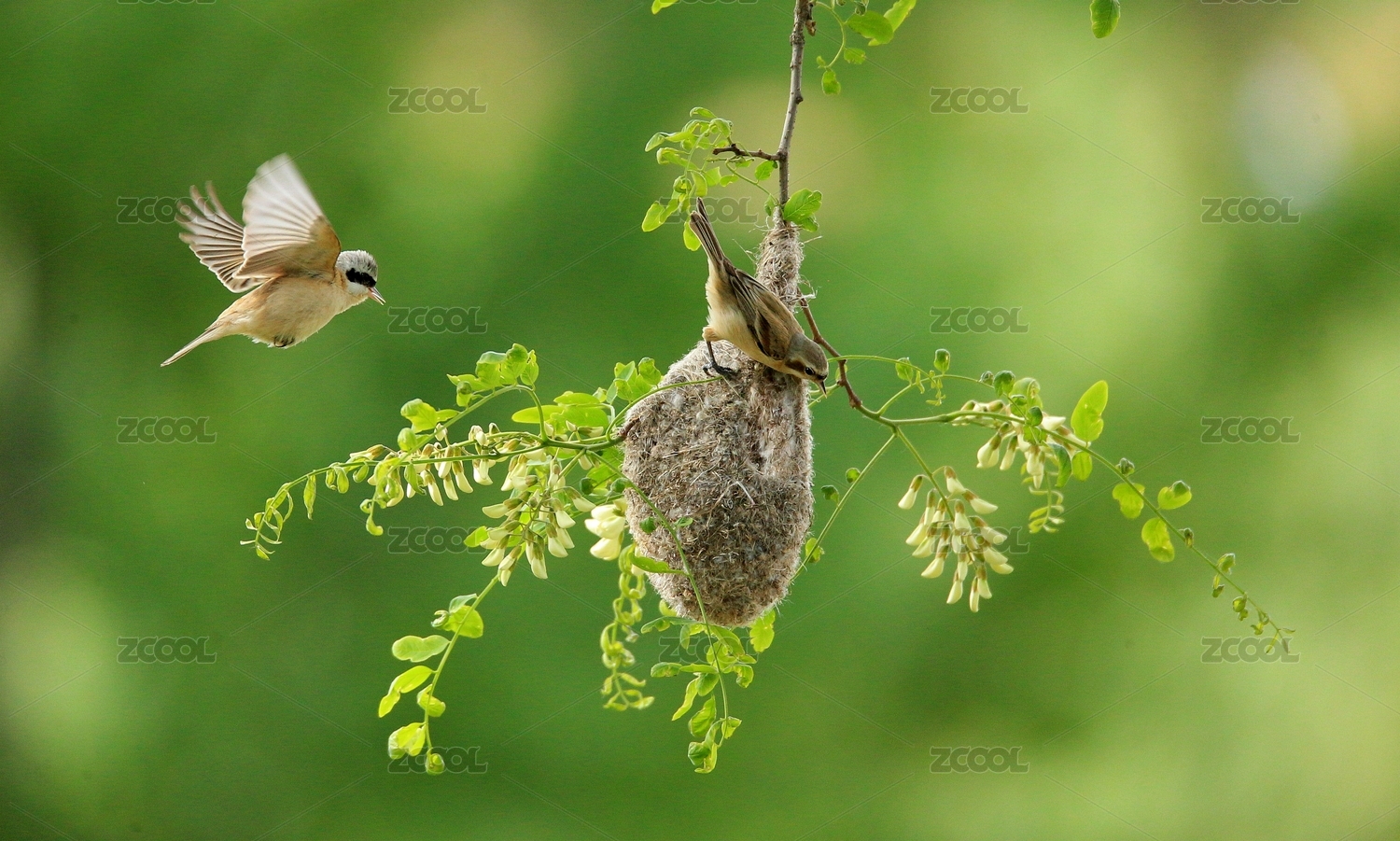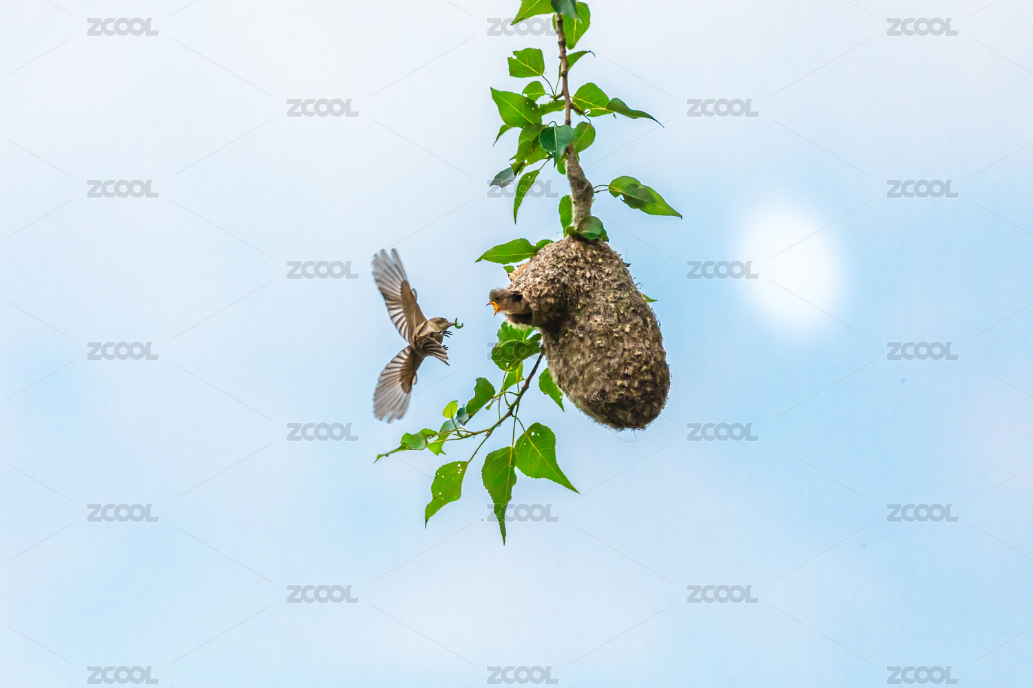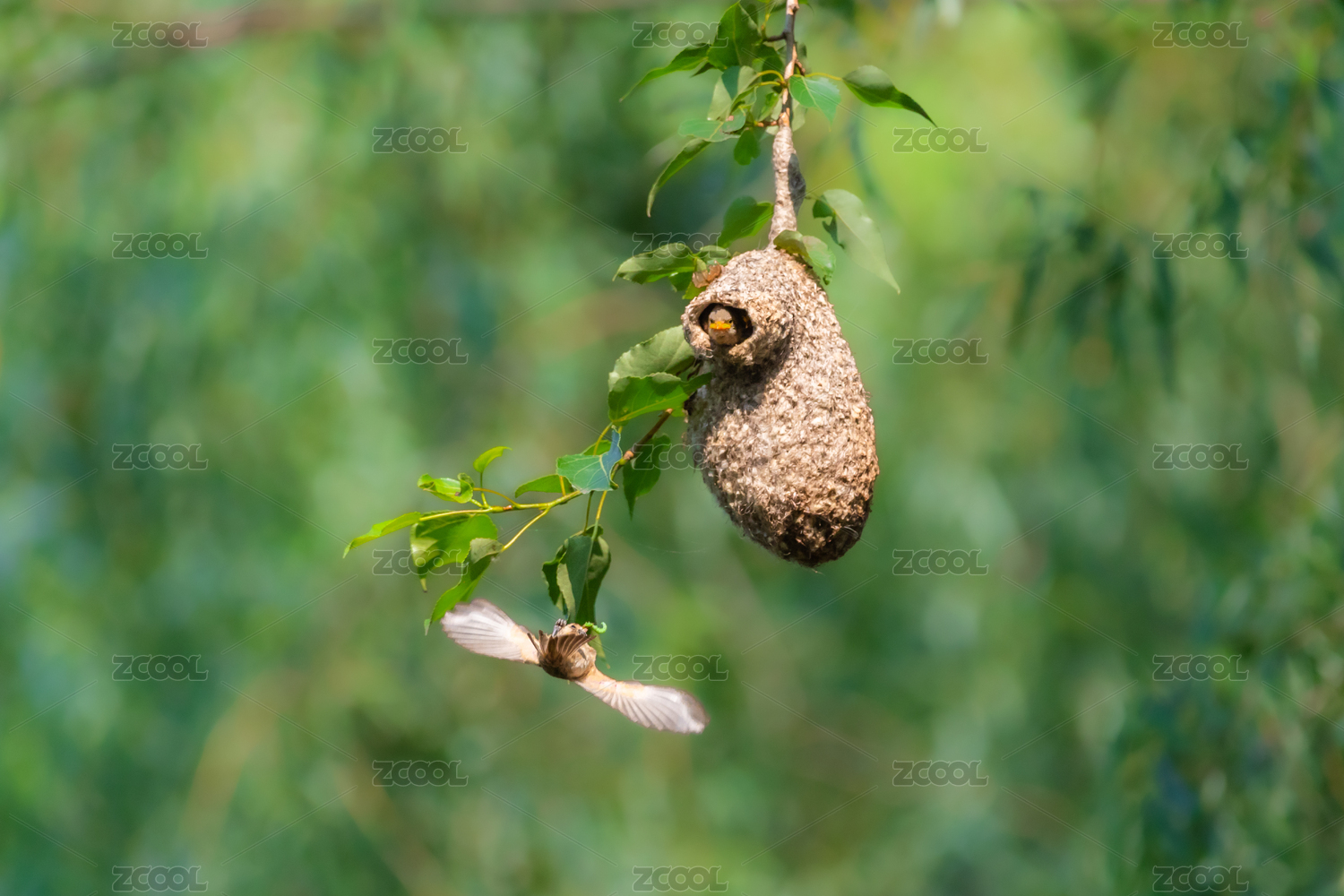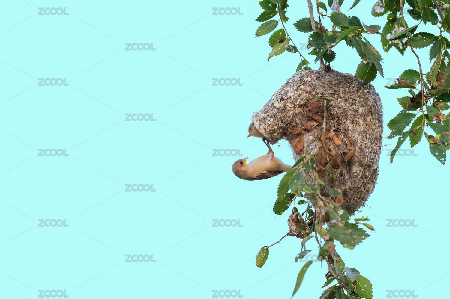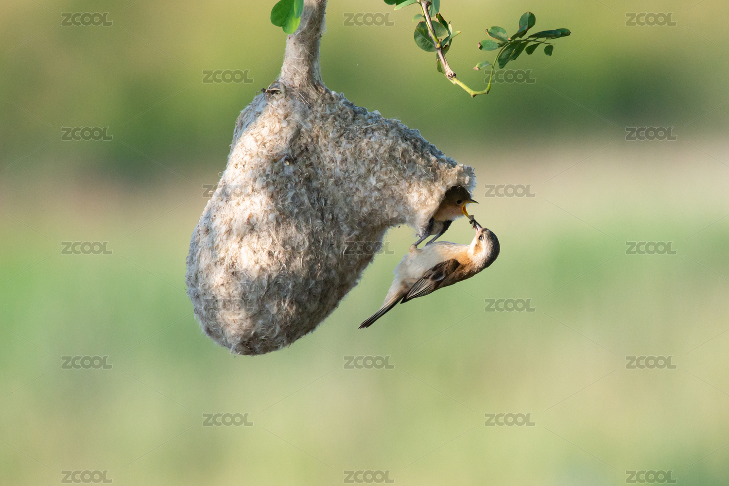 一只中华攀雀在养育它的幼鸟