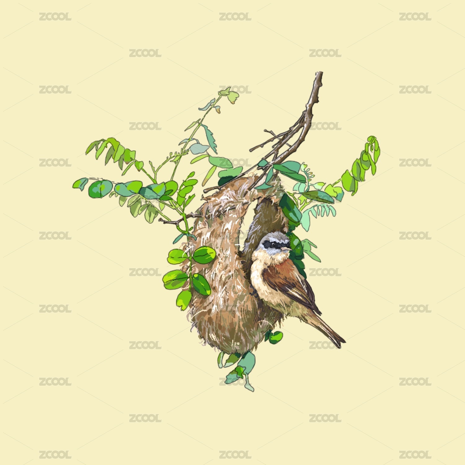筑巢的中华攀雀
