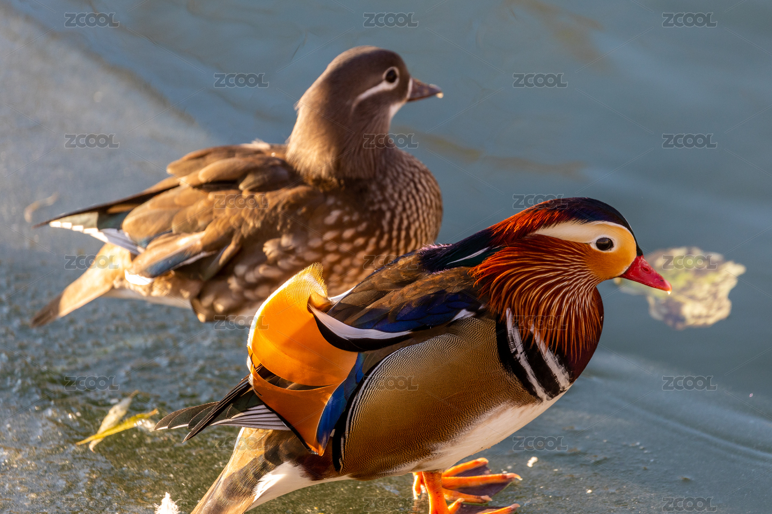 冬天黄昏中北海公园的鸳鸯