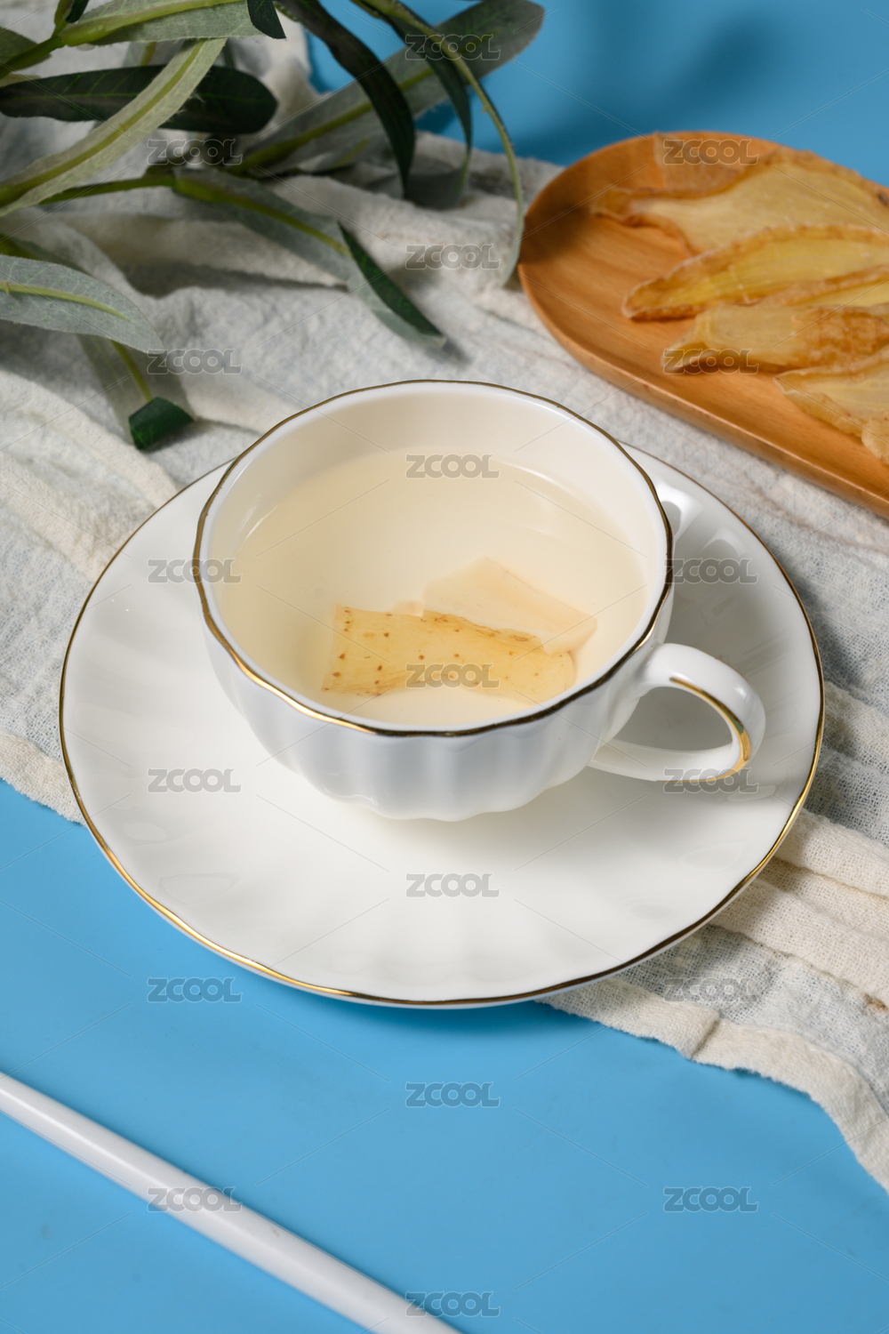 桌面上的杯子里的甘甜可口的天麻茶