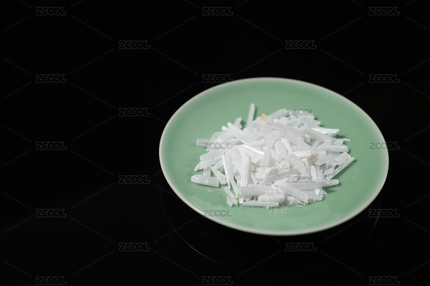 桌面上的盘子里的干爽的生石膏