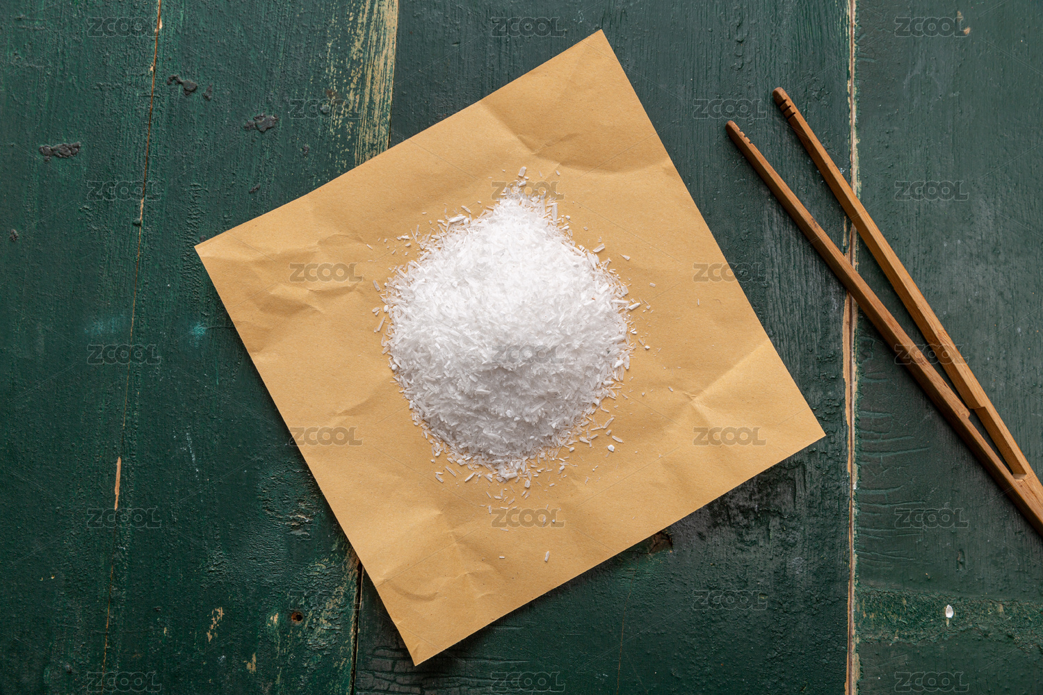 木桌面上的一包中药材:生石膏