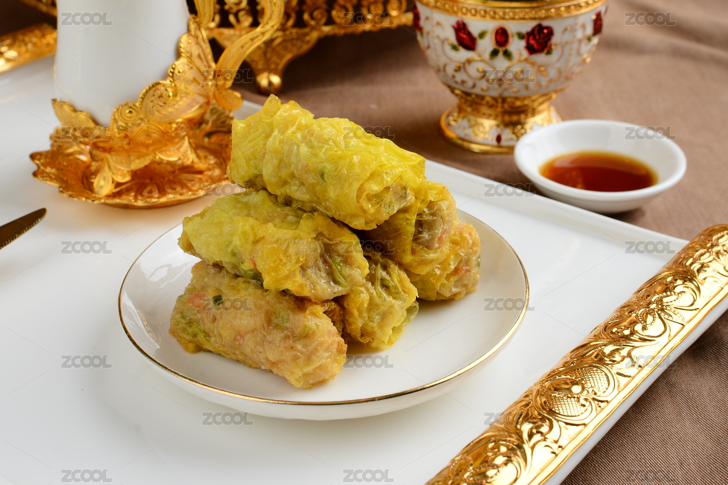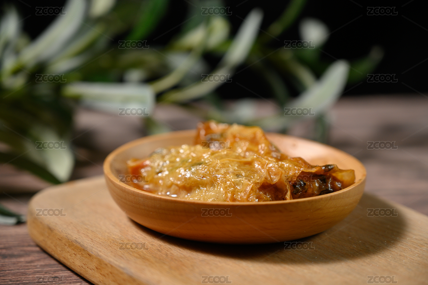 一盘火锅食材响铃卷腐皮卷摆放在桌面上特写