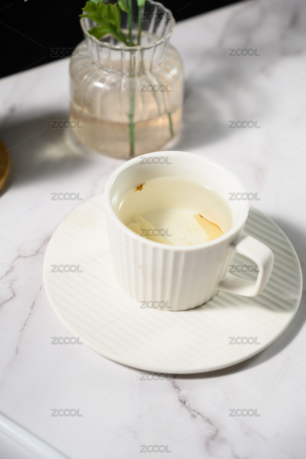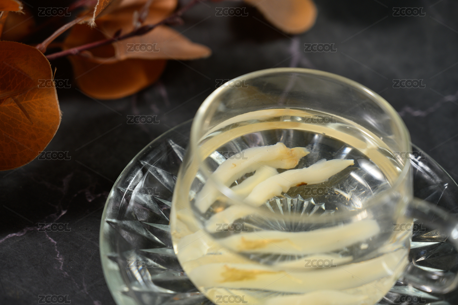 桌面上的杯子里的甘甜可口的天冬茶