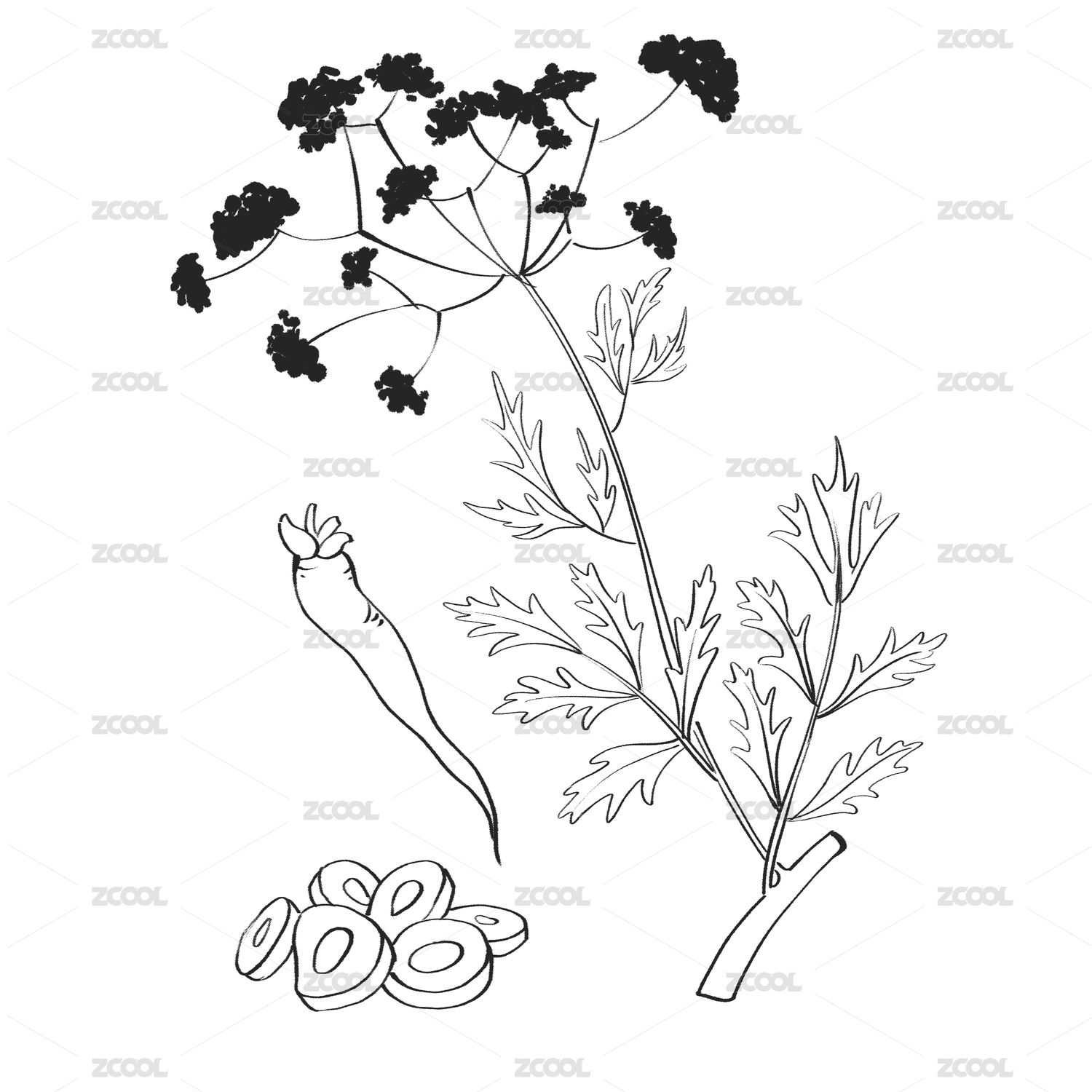 防风水彩插画手绘中药材