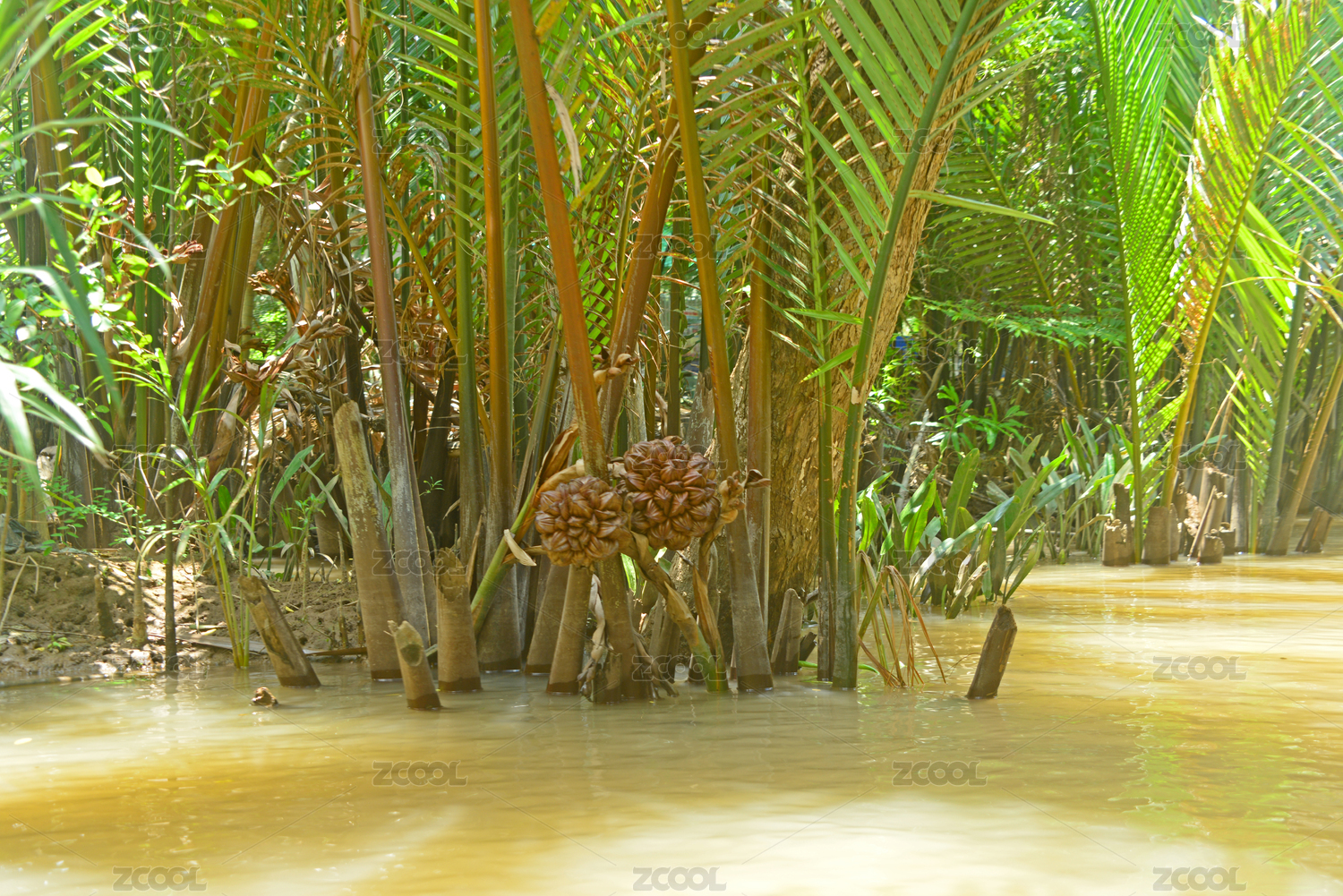 越南湄公河河畔的水椰子树和水椰果实