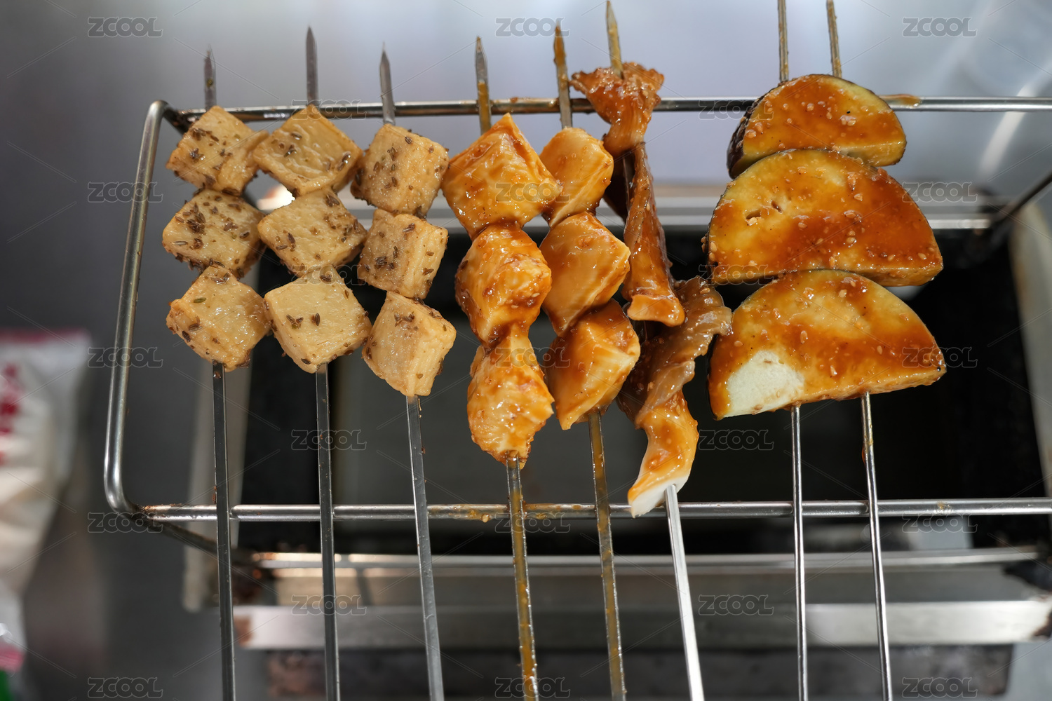 传统美食小吃烧烤烤串烤蘑菇烤莲藕