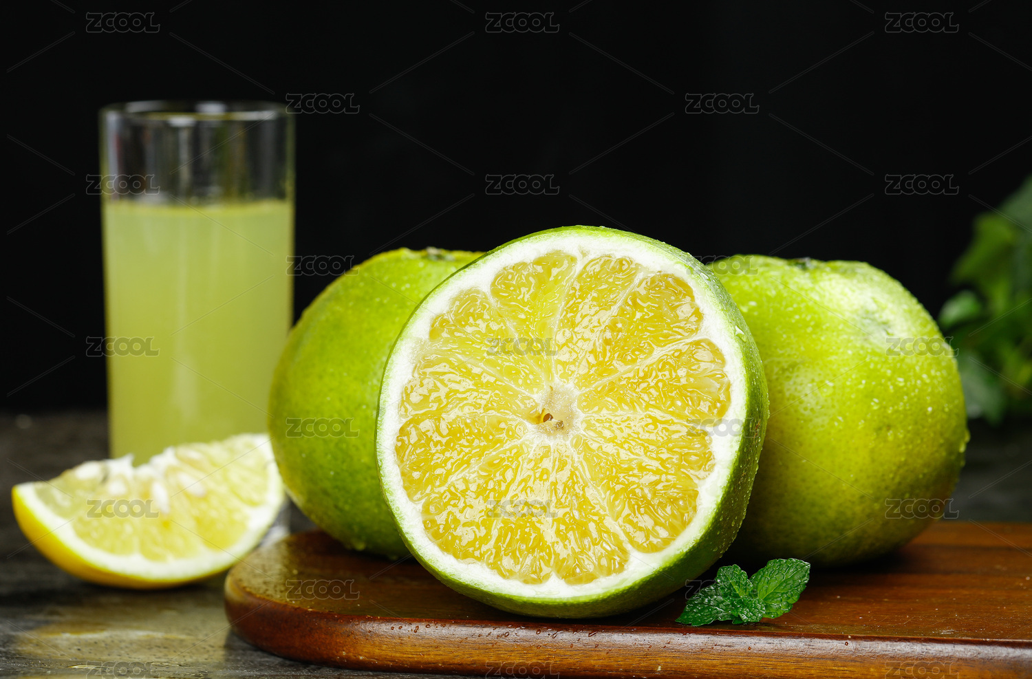 深底上放着一蓝鸡尾青柚和半边切面青柚