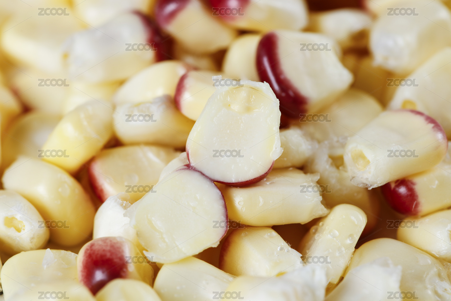 手上端着一碟花糯玉米粒和勺子上挖着玉米粒