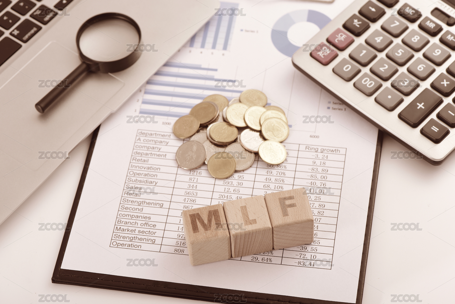 金融图表上摆放着字母方块MLF
