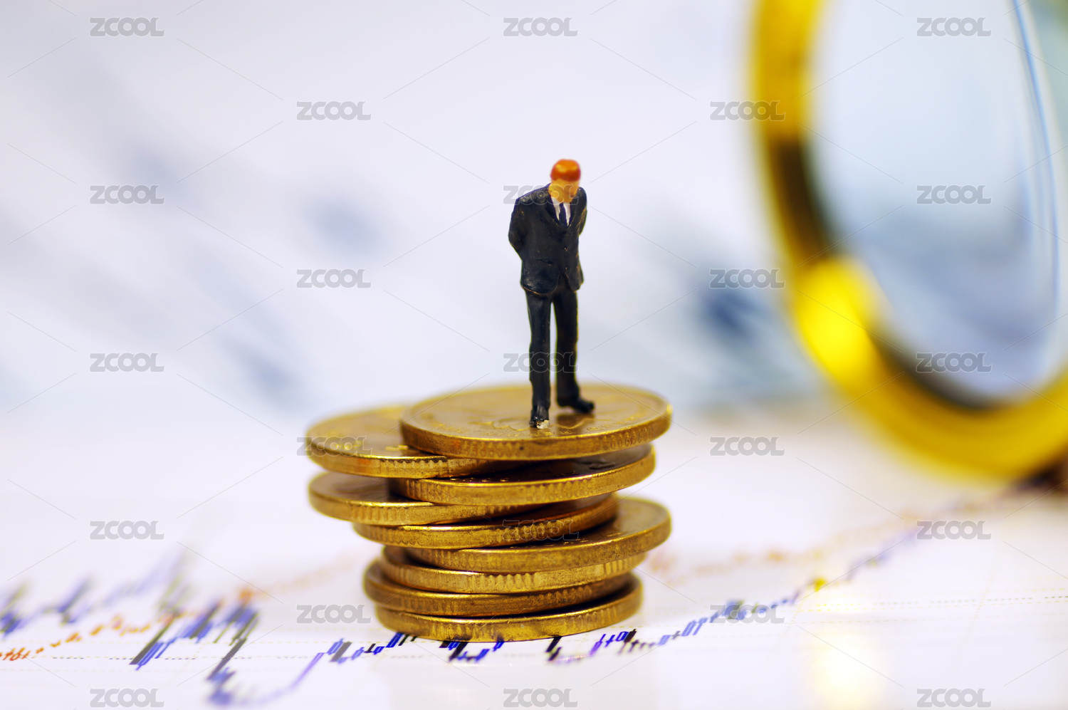 金融图表上摆放着许多硬币