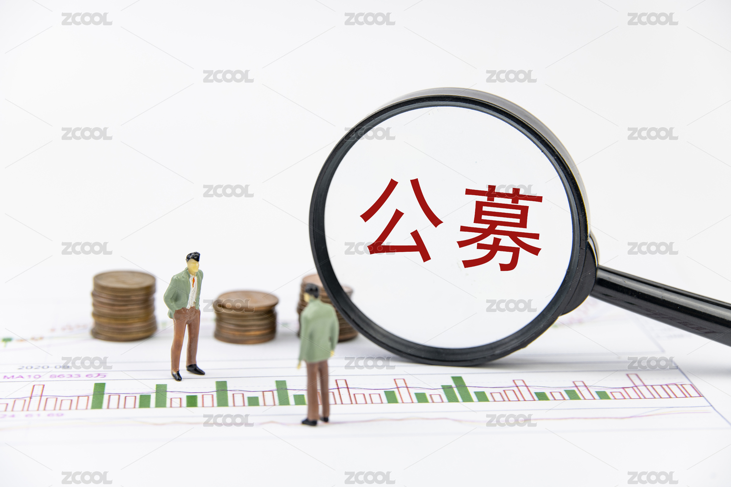 图表上的放大镜印着文字公募