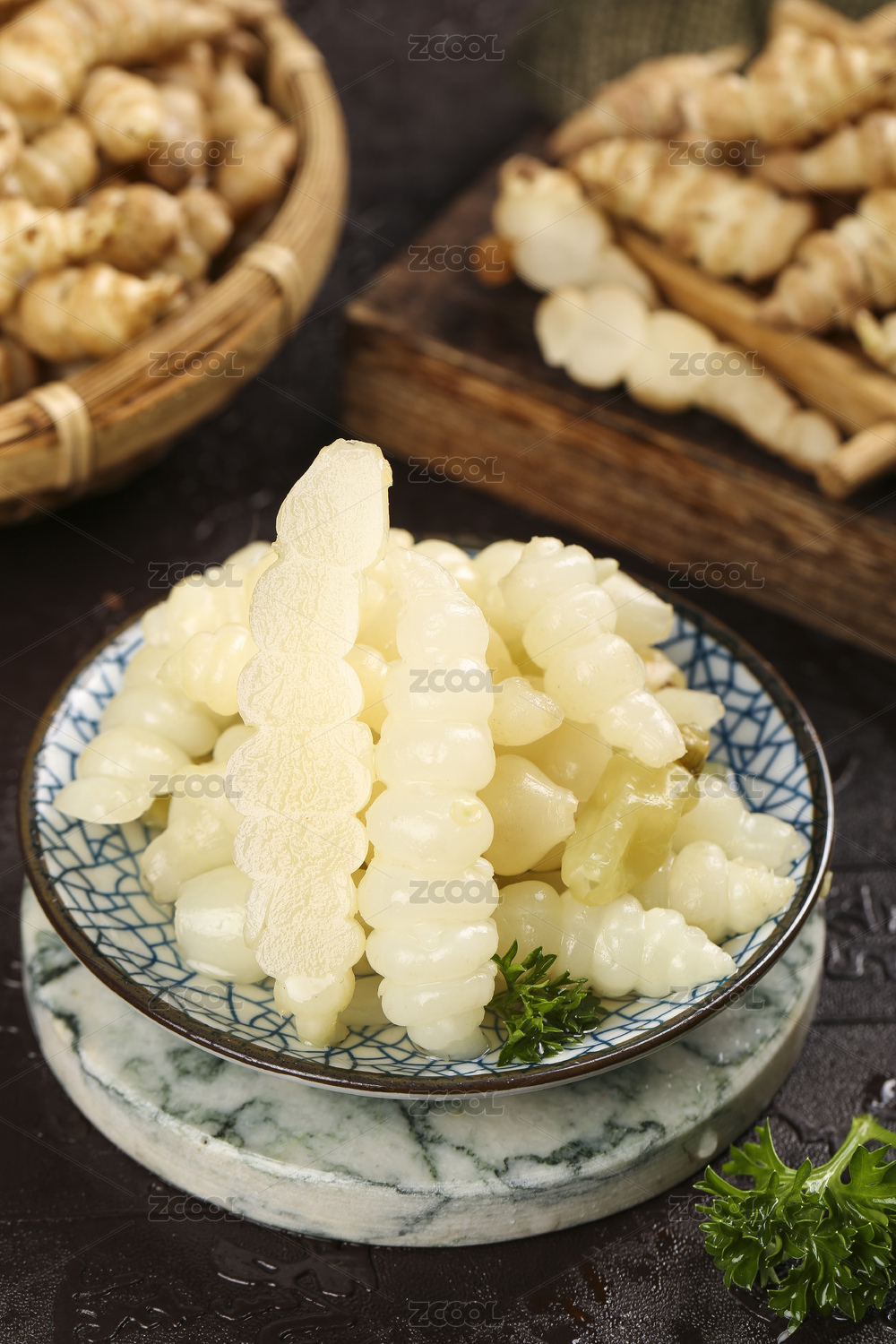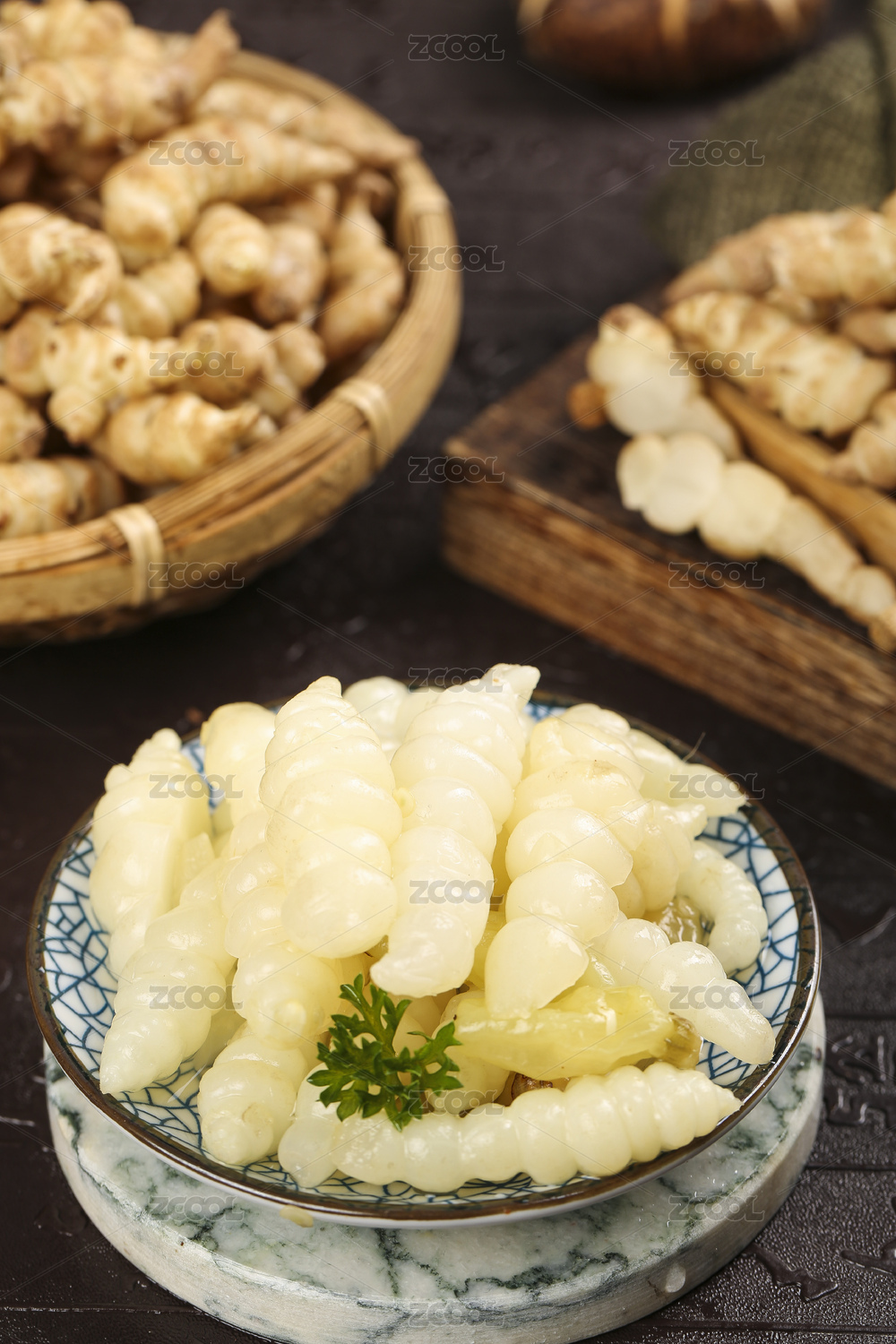 石垫上放着一碟宝塔菜