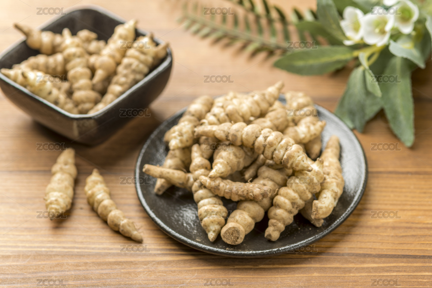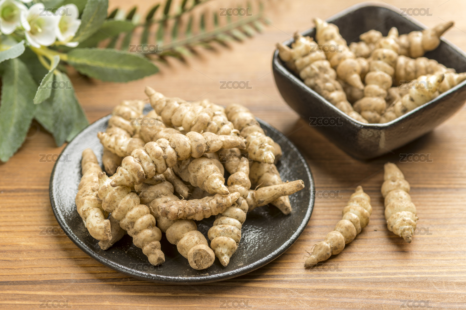 新鲜的宝塔菜摆放在桌面上特写