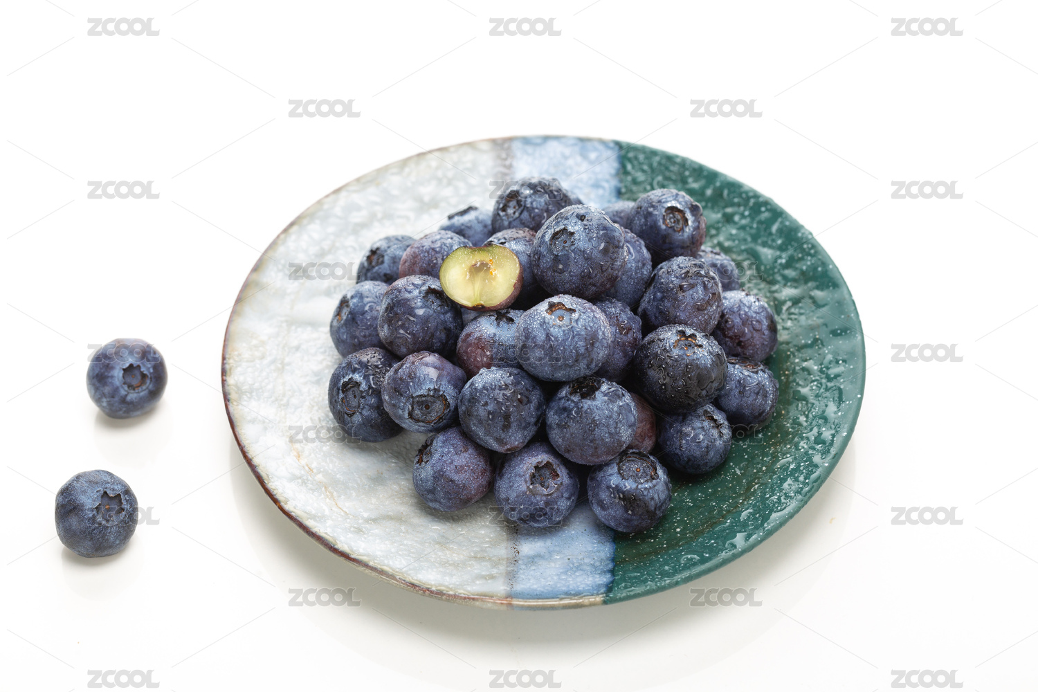 白色背景上的一盘云南彩虹蓝莓