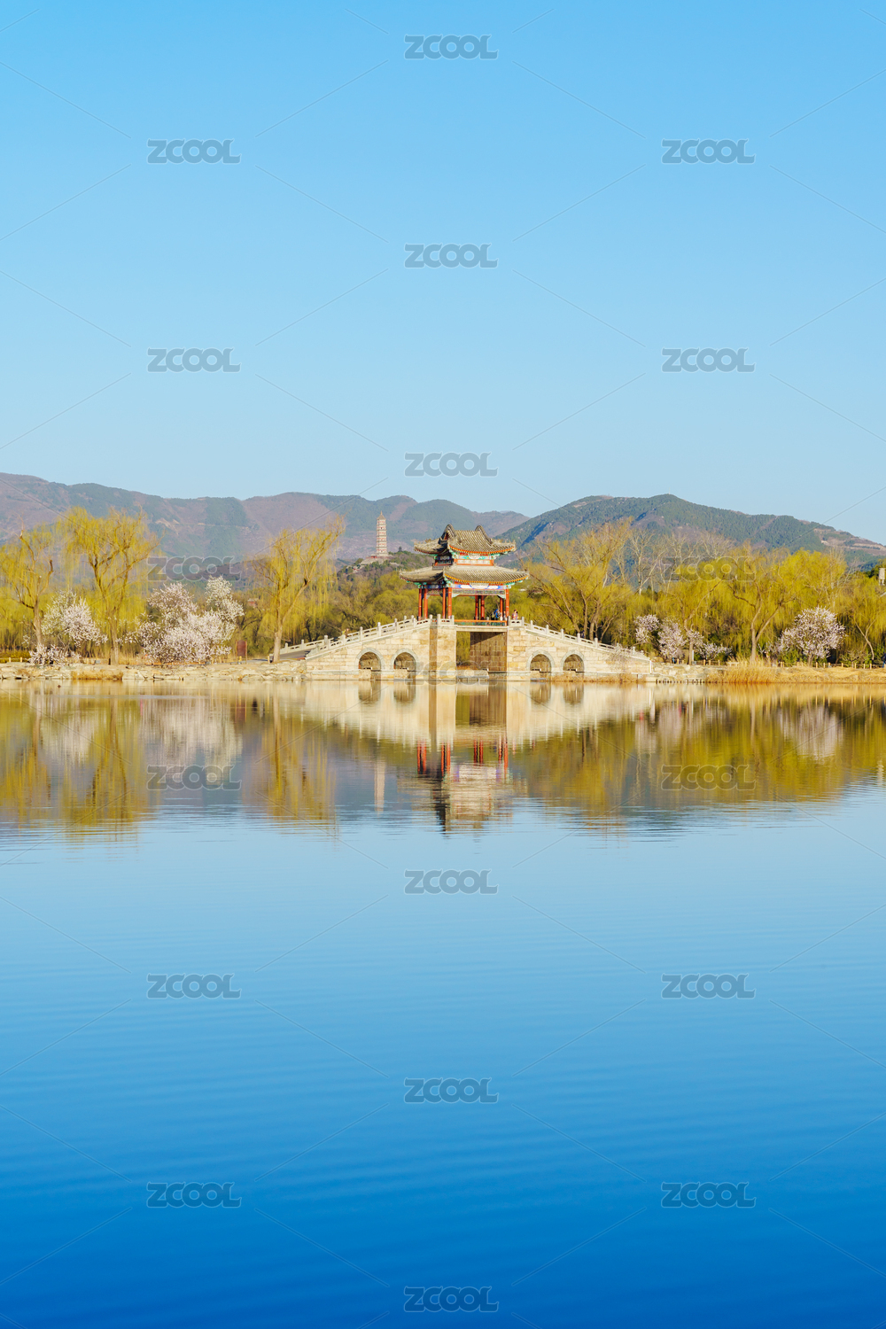 远眺颐和园西堤练桥和玉泉山宝塔