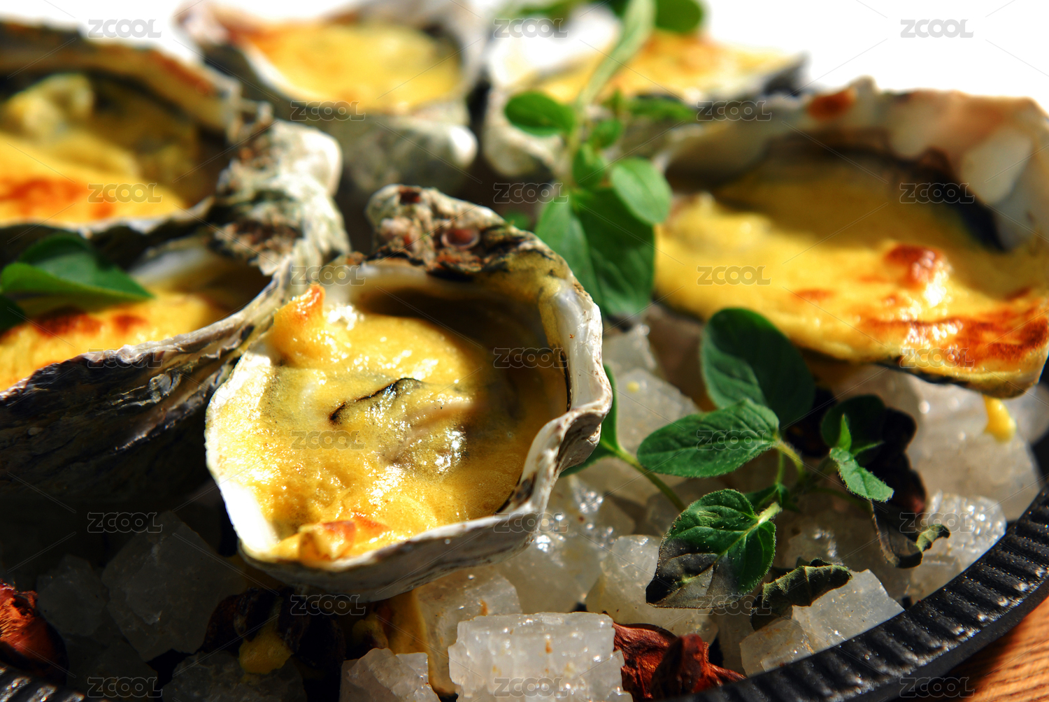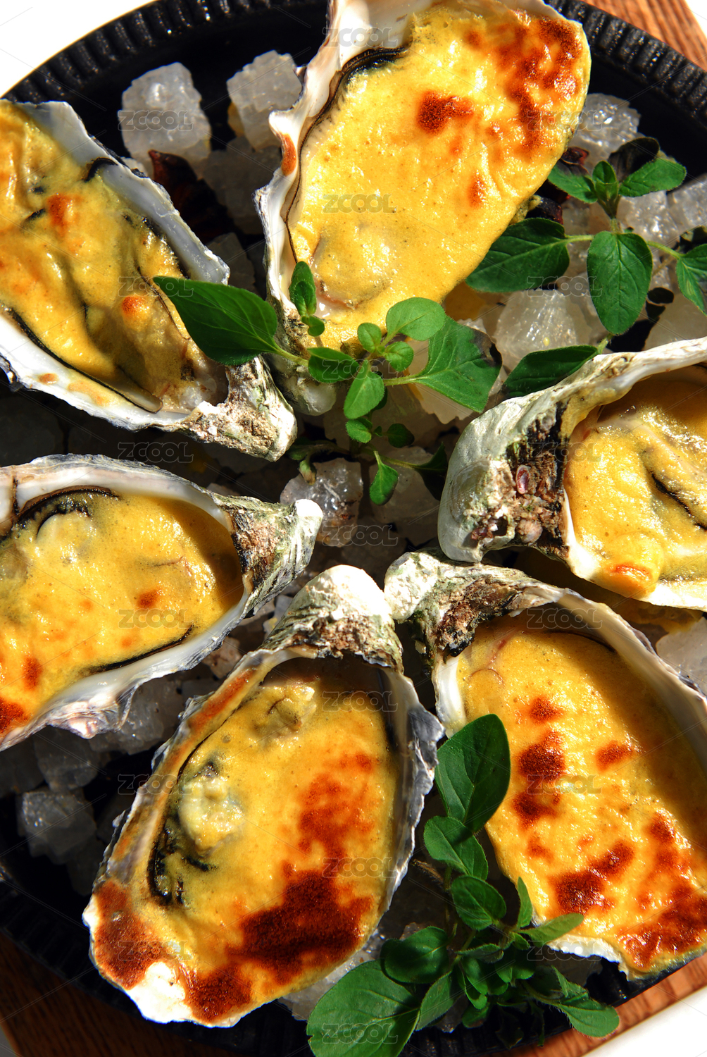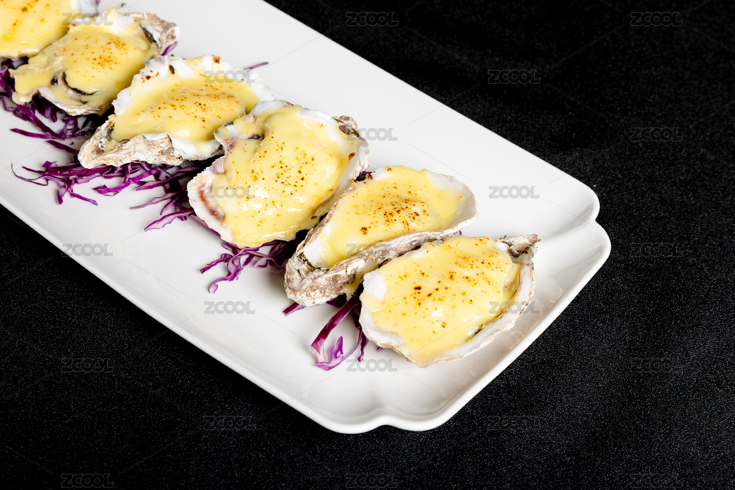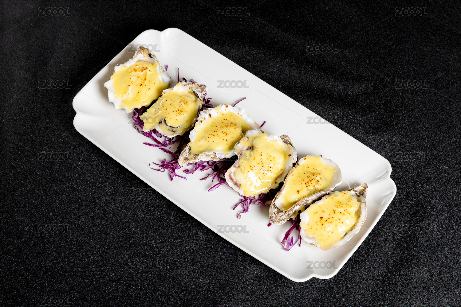 酒吧小吃风味美食近景墨西哥牛肉玉米卷,远景芝士焗生蚝、烤鹅肝牛肉、啤酒