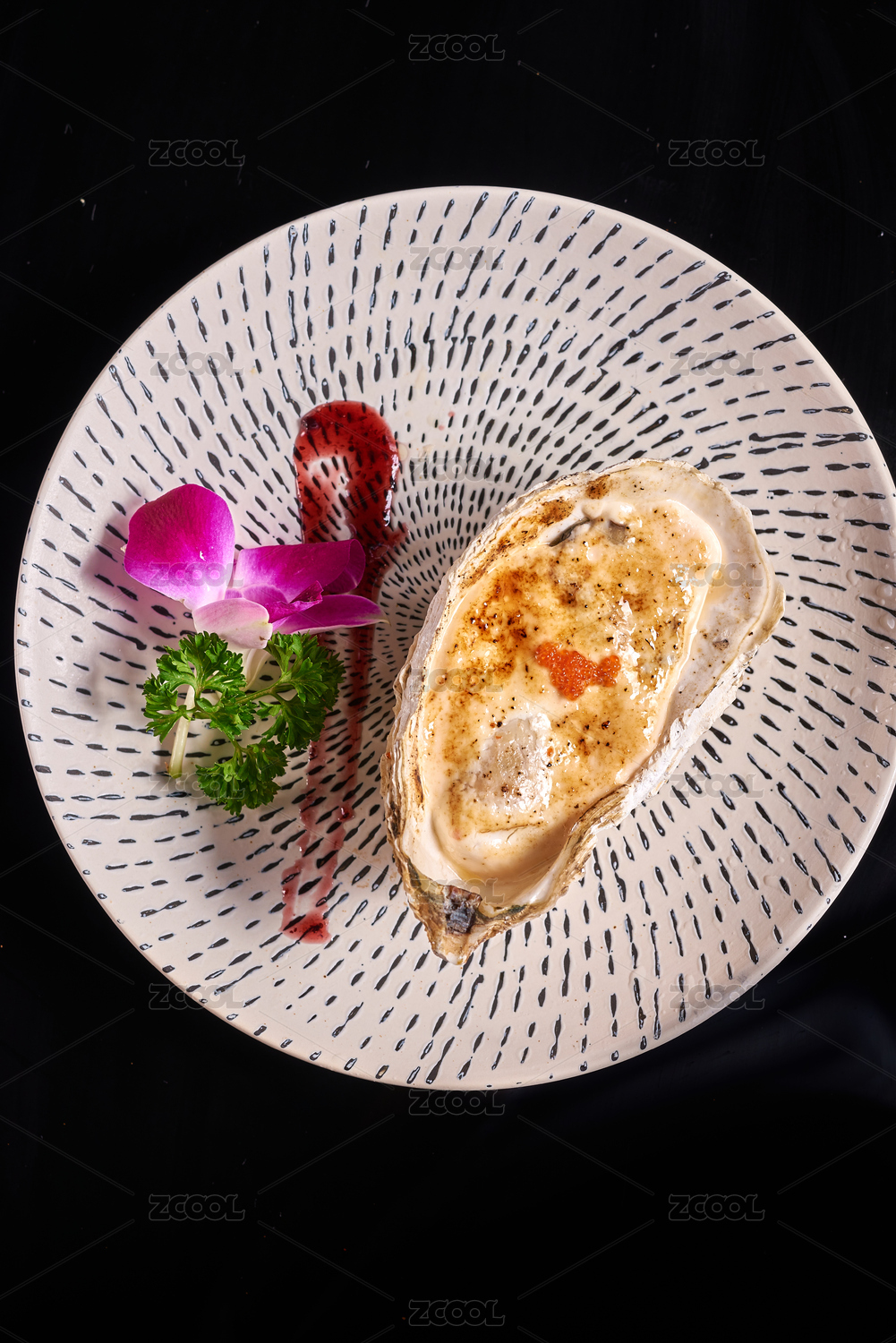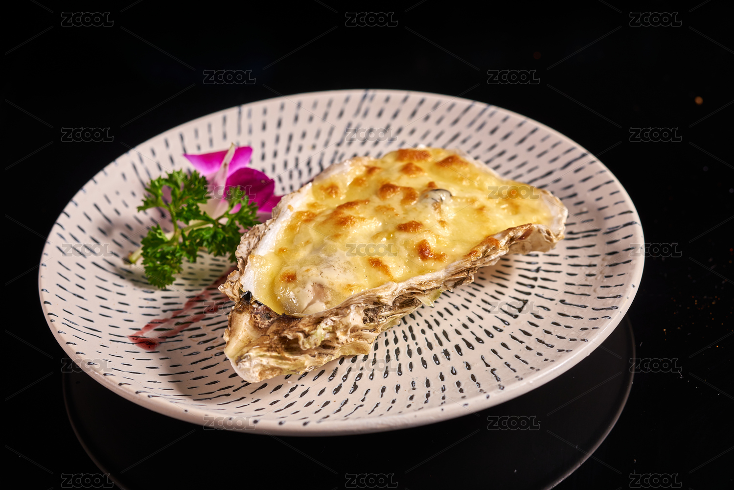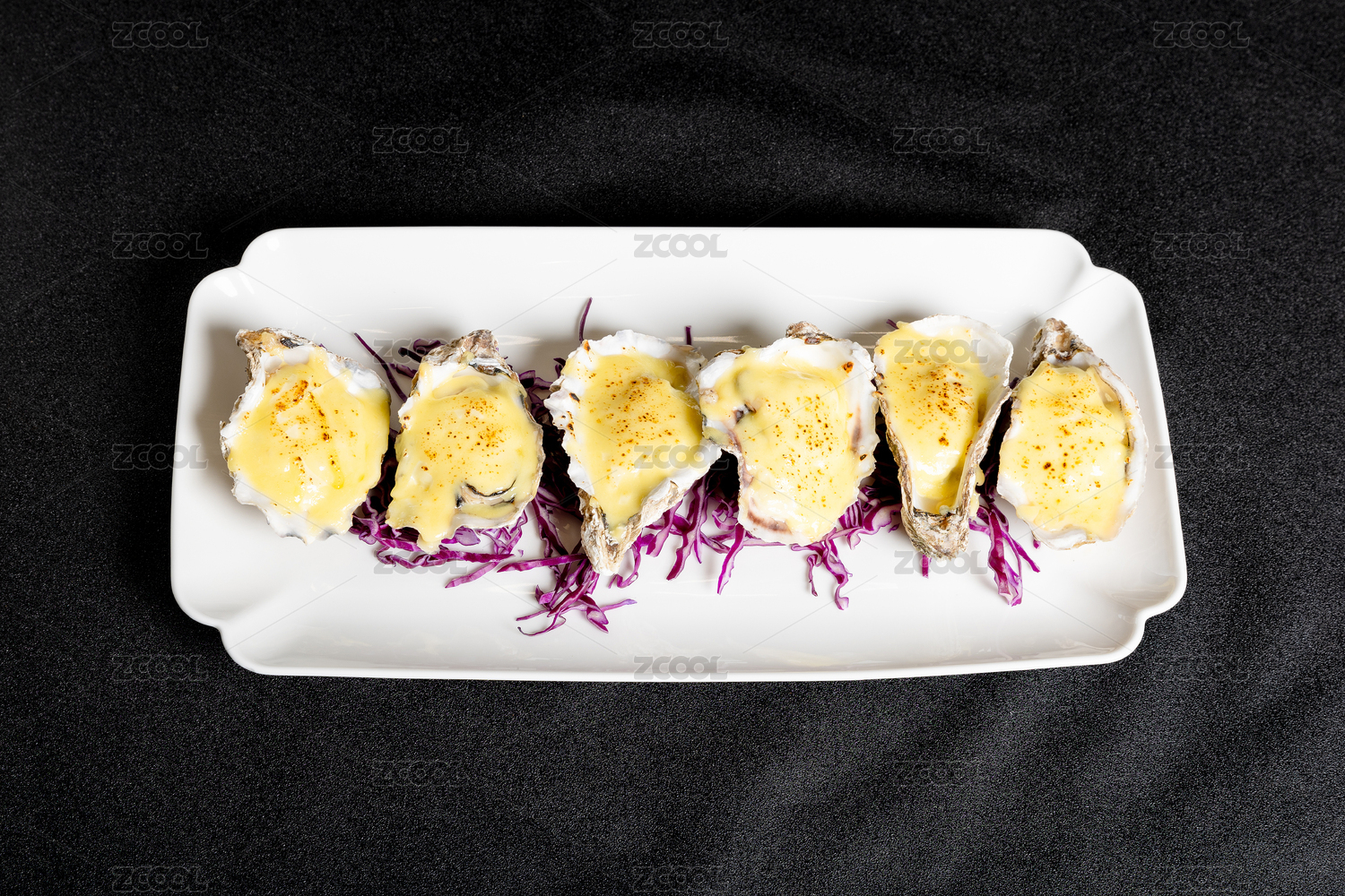 酒吧小吃风味美食近景墨西哥牛肉玉米卷,远景芝士焗生蚝、烤鹅肝牛肉、啤酒