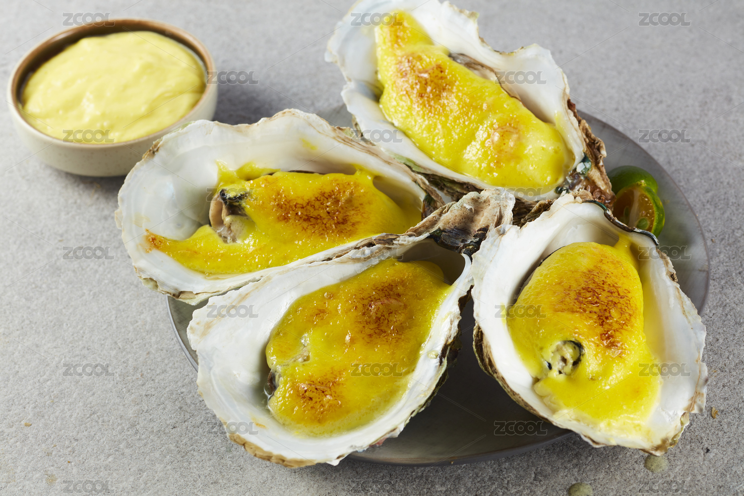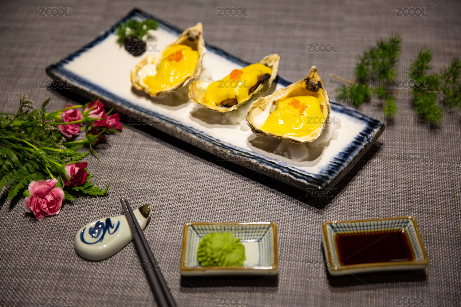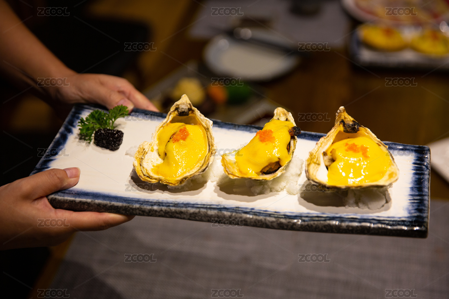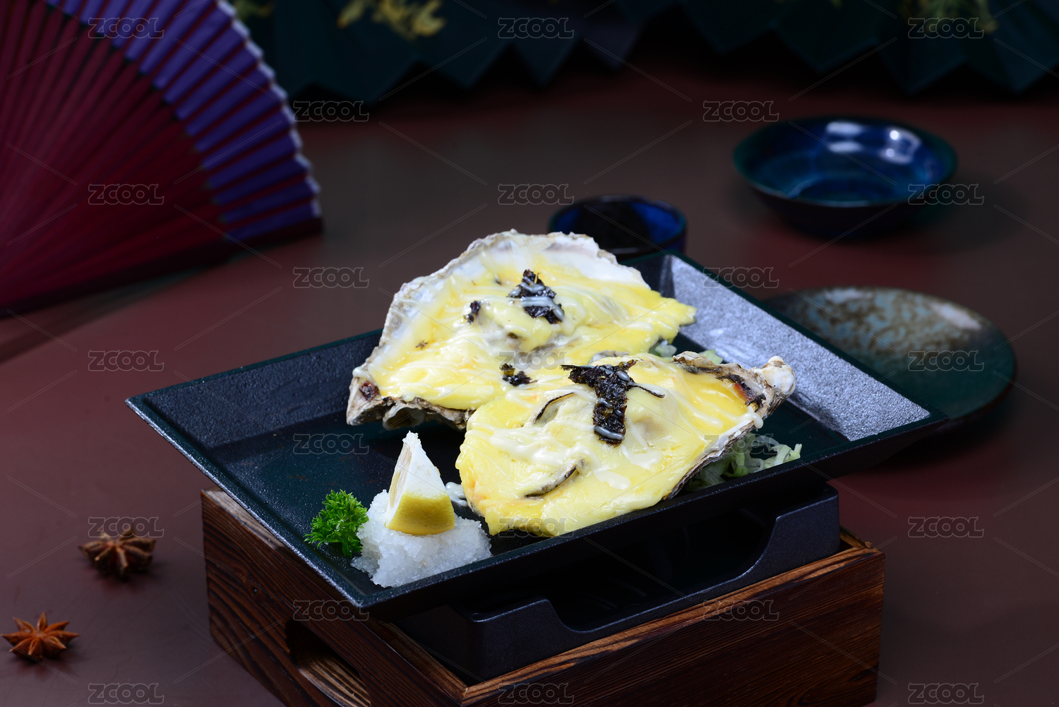 酒吧小吃风味美食近景墨西哥牛肉玉米卷,远景芝士焗生蚝、烤鹅肝牛肉、啤酒