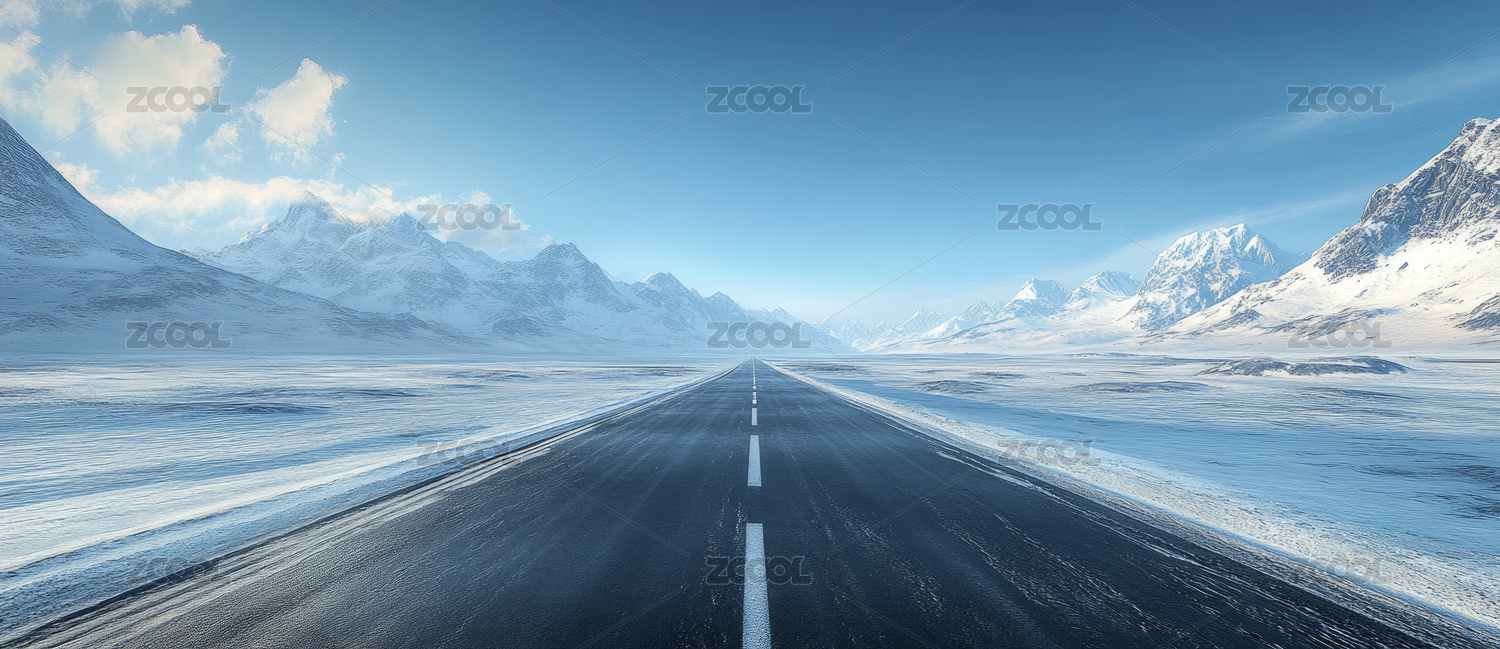 雪山柏油路汽车广告背景