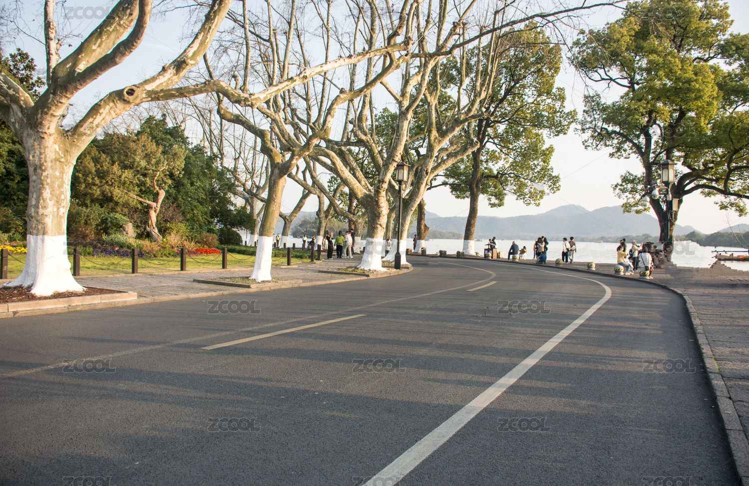 傍晚的杭州西湖孤山路梧桐公路风光
