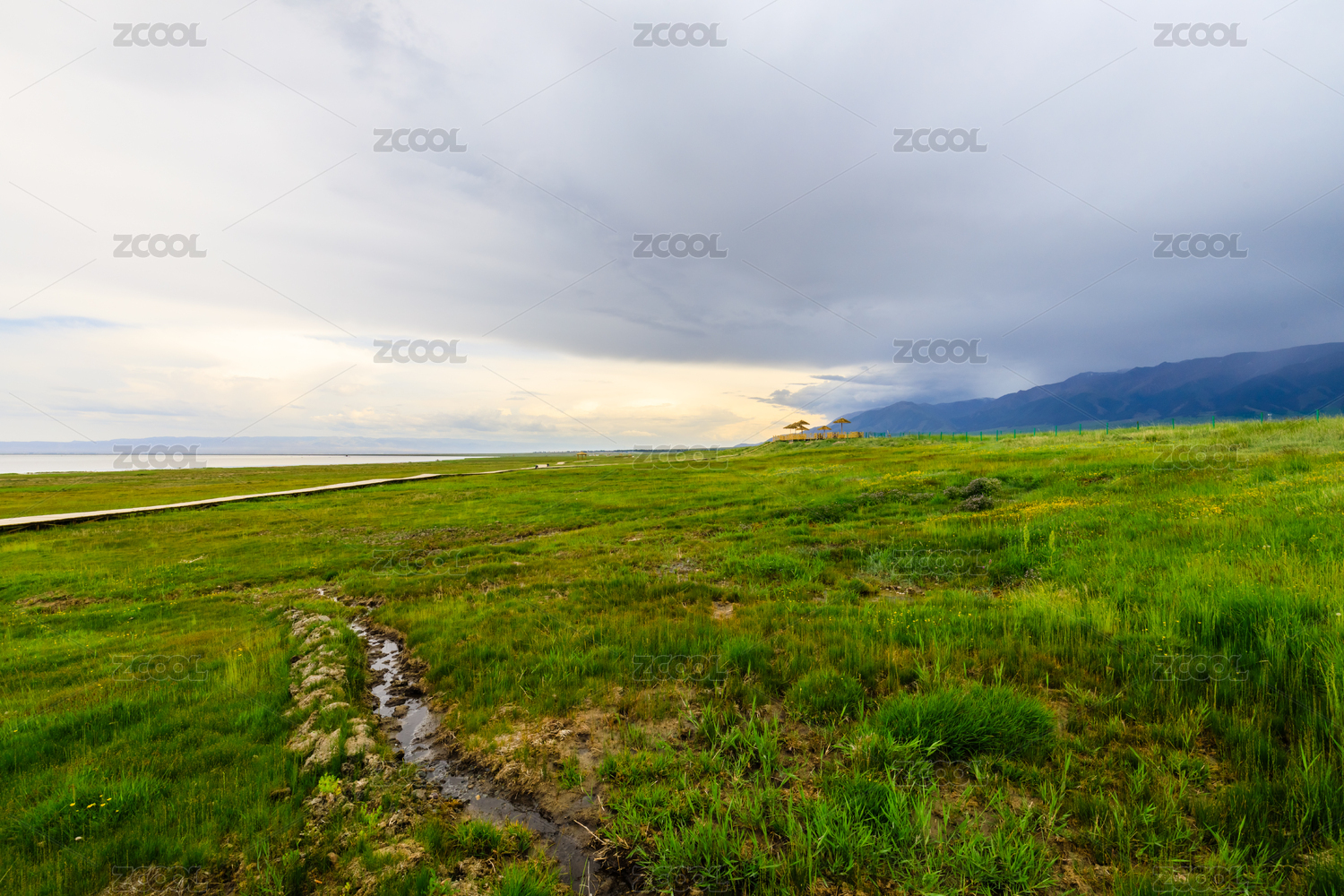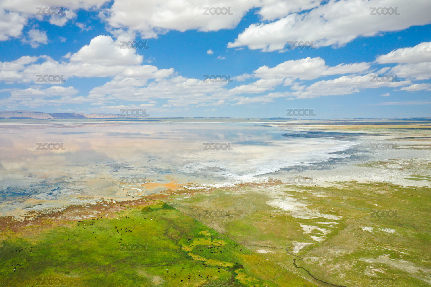 中国新疆哈密巴里坤湖泊自然风光航拍
