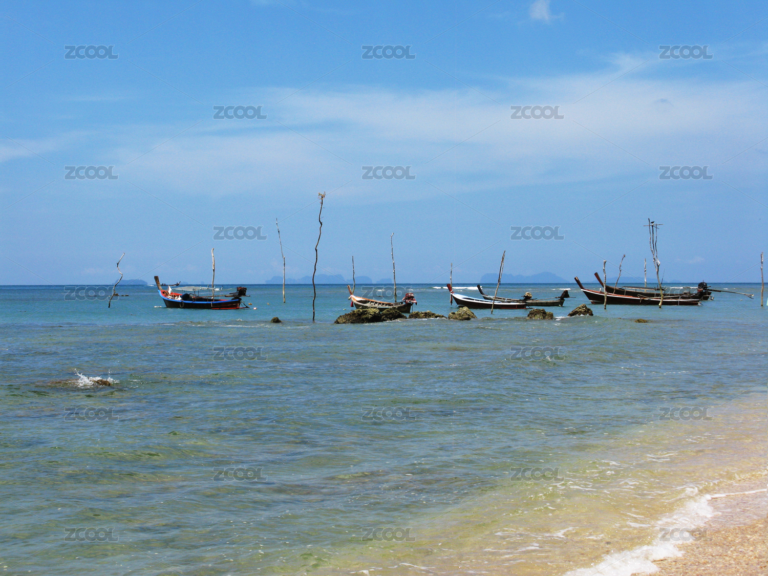 海滩边的长尾船