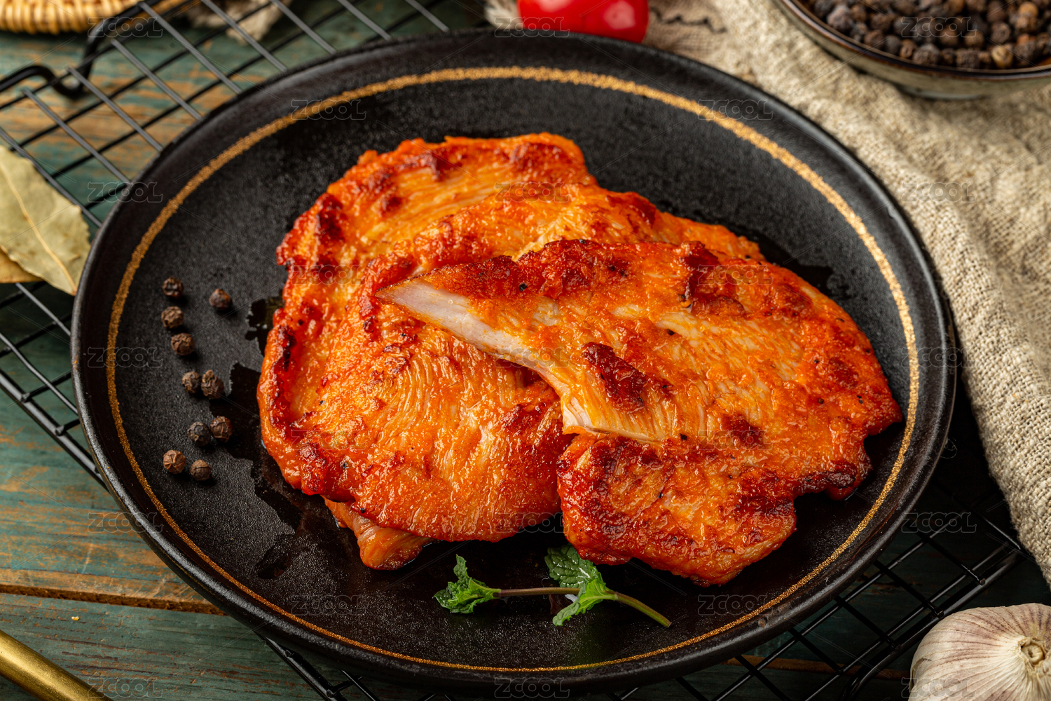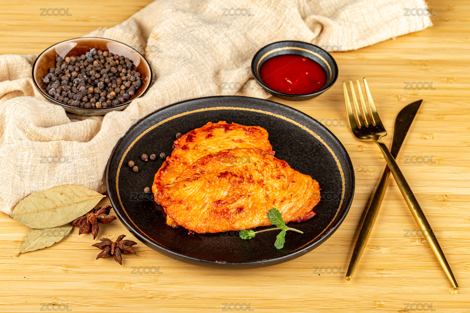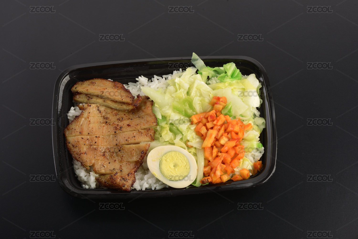 摆放在黑色桌子上的外卖黑椒鸡排饭