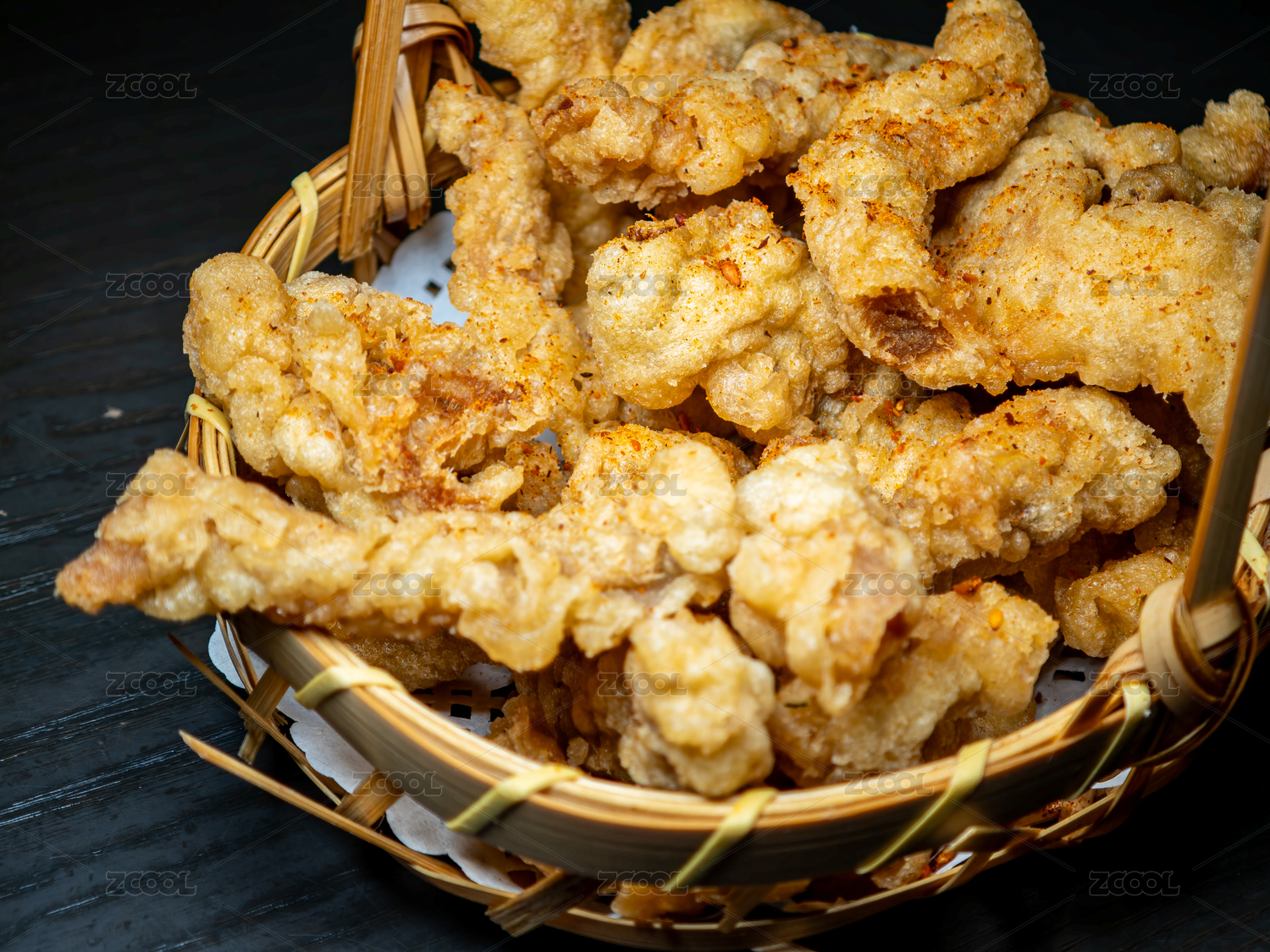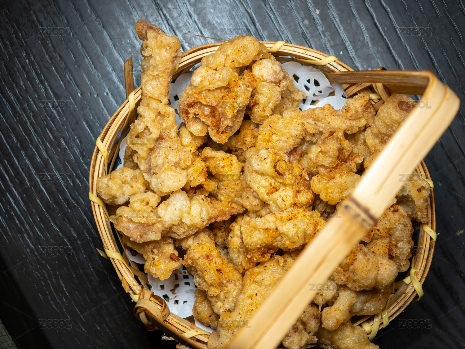 竹篮里的现炸小酥肉