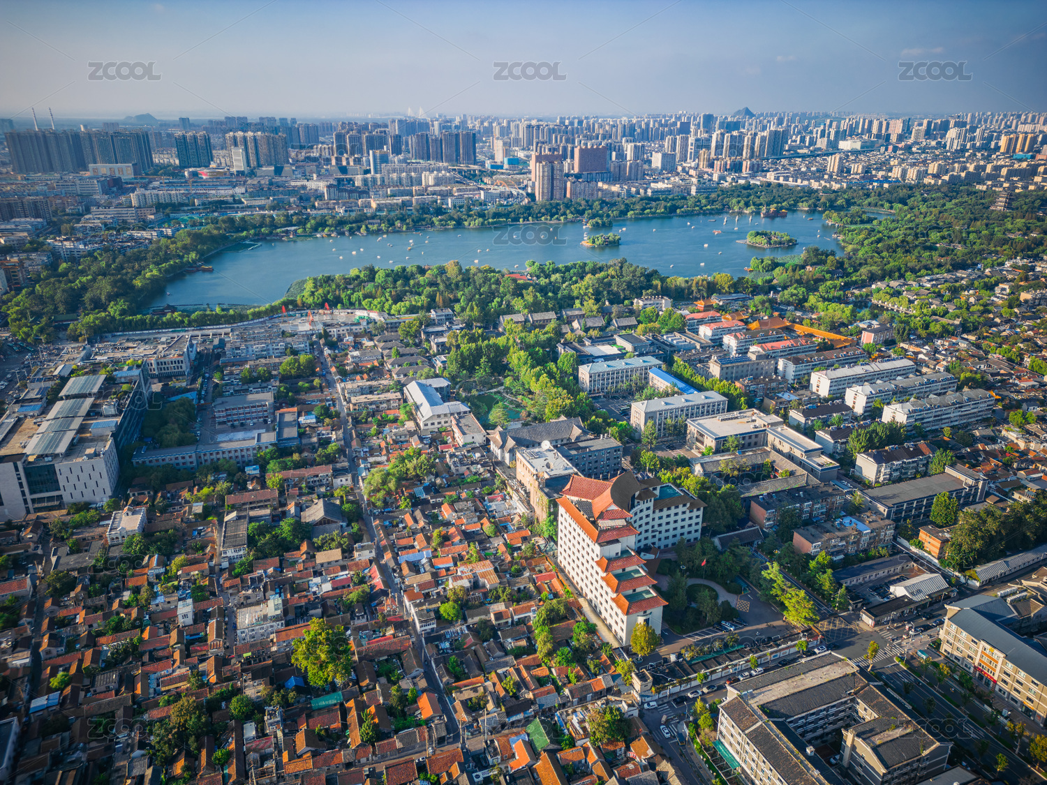 济南大明湖公园航拍