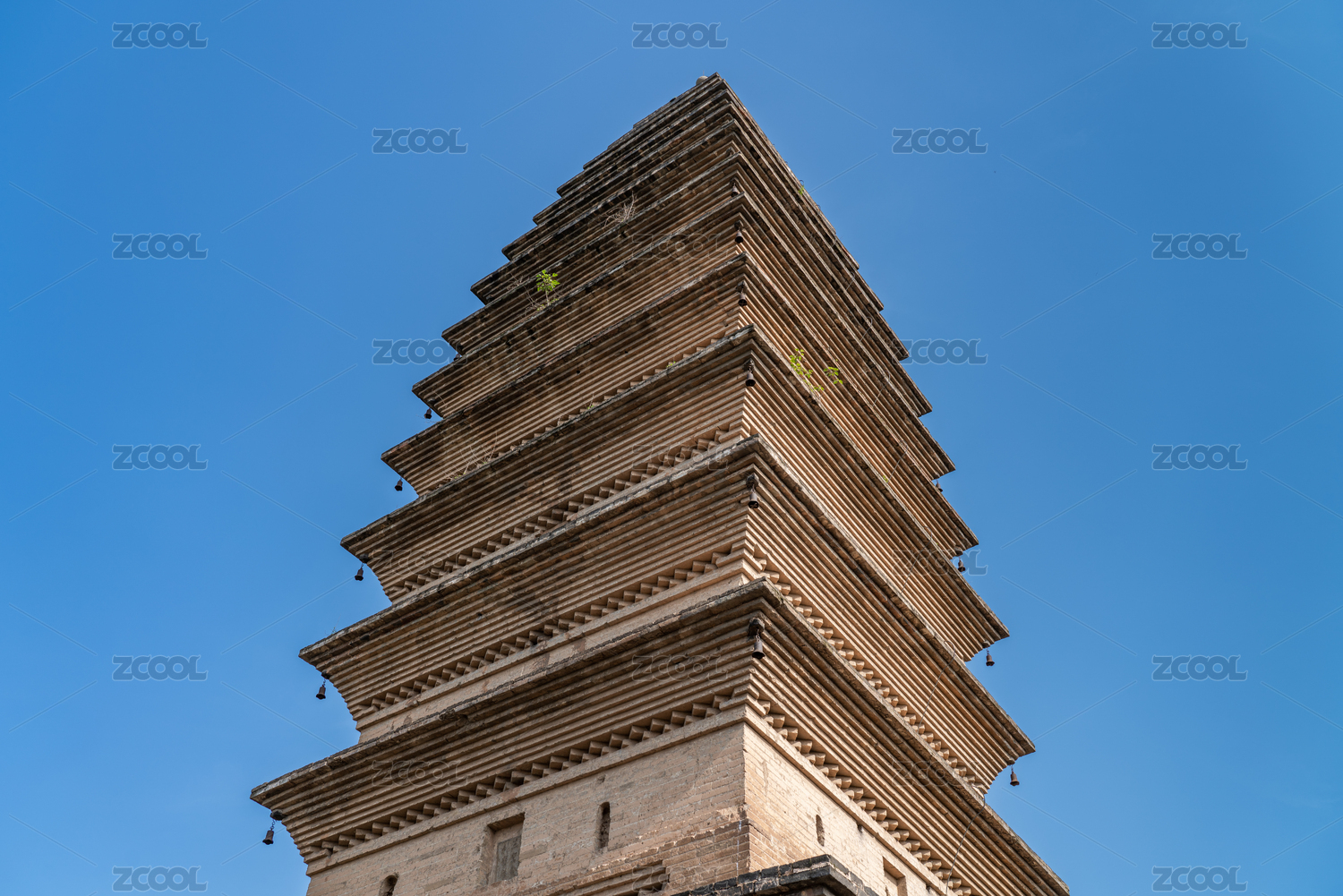 航拍河南三门峡黄河湿地公园宝轮寺塔特写