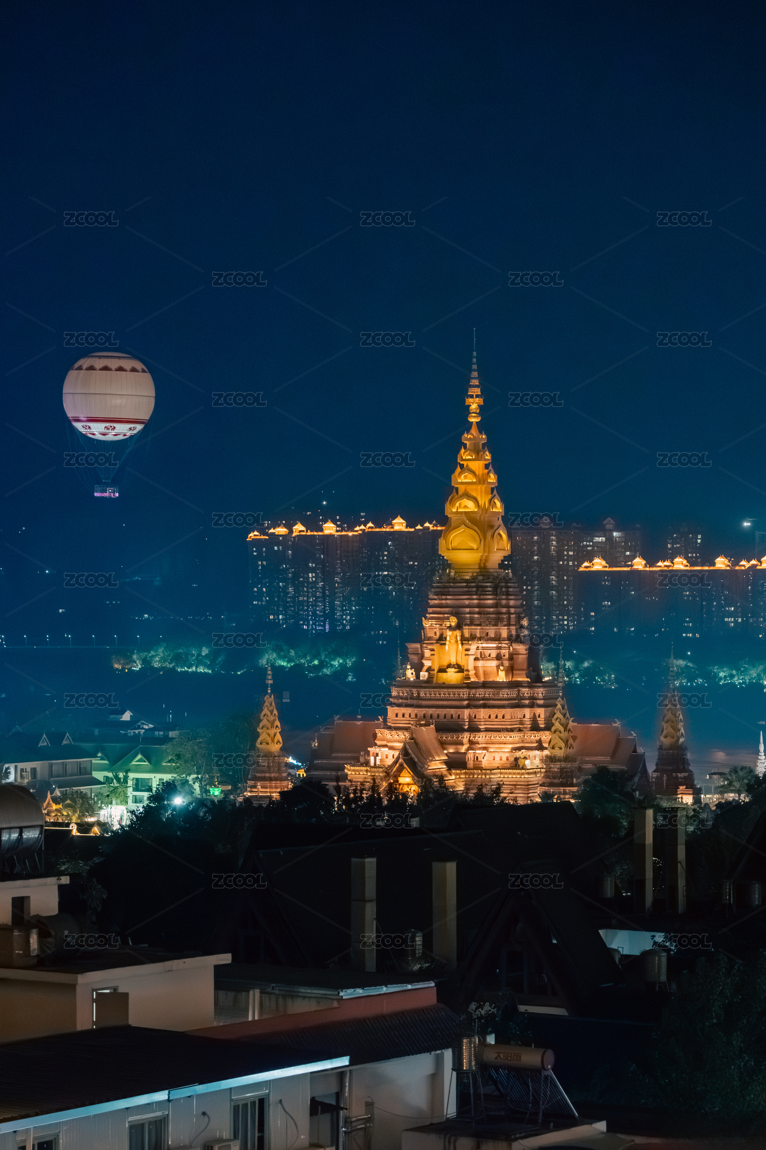 云南西双版纳大金塔寺夜景