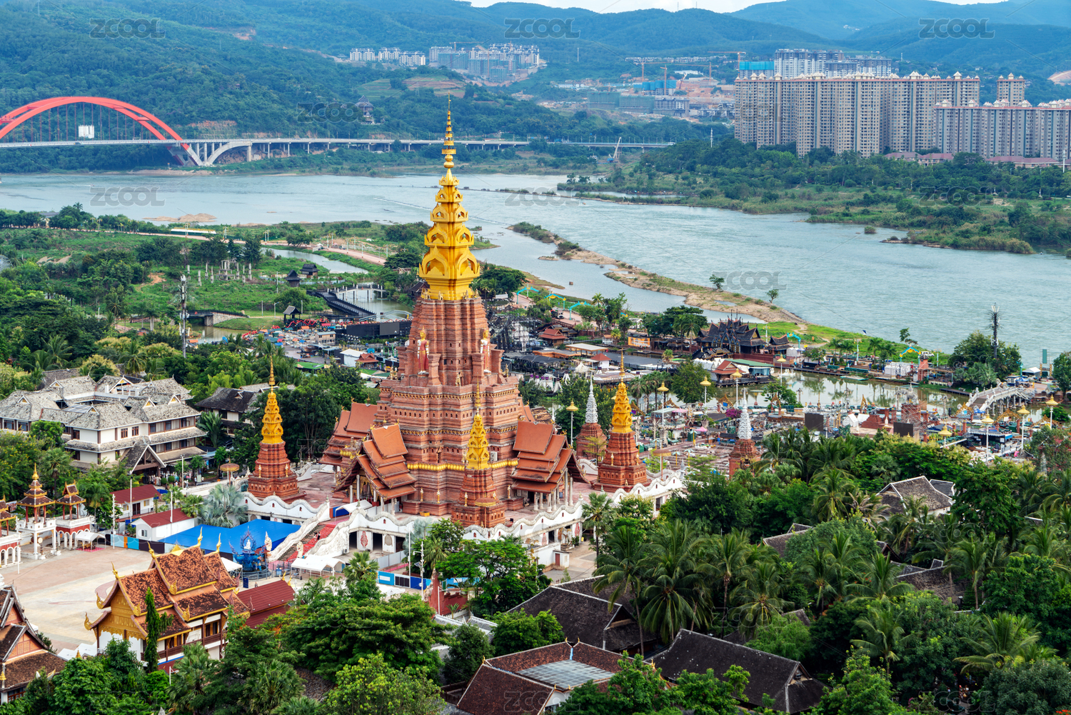 云南西双版纳景洪市告庄大金塔寺风光