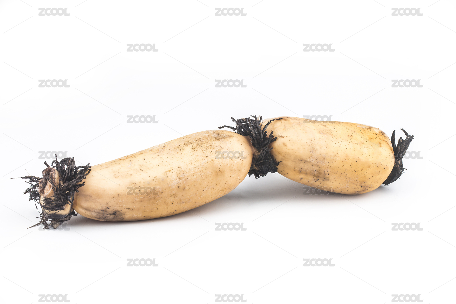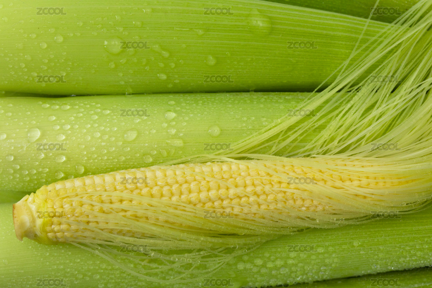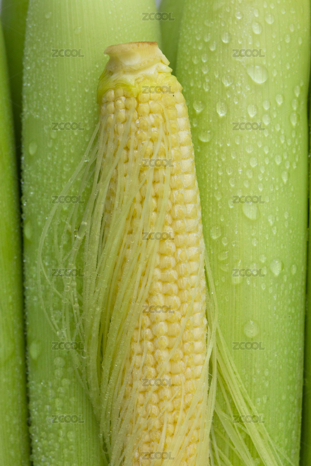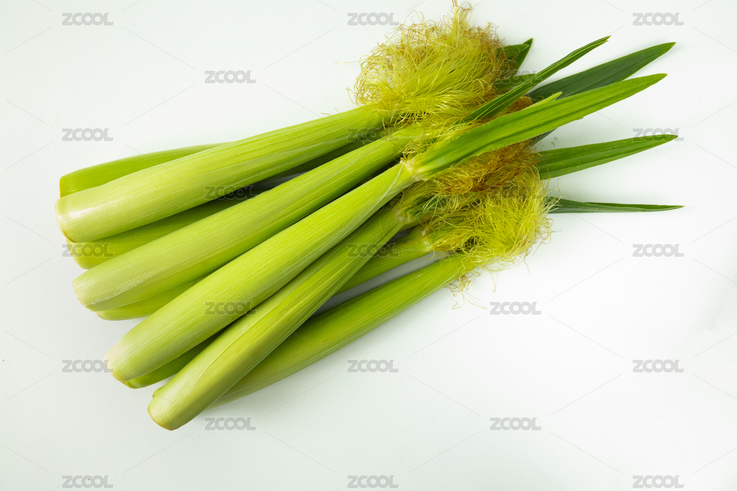 拔开嫩壳的玉米笋与玉米笋在白背景