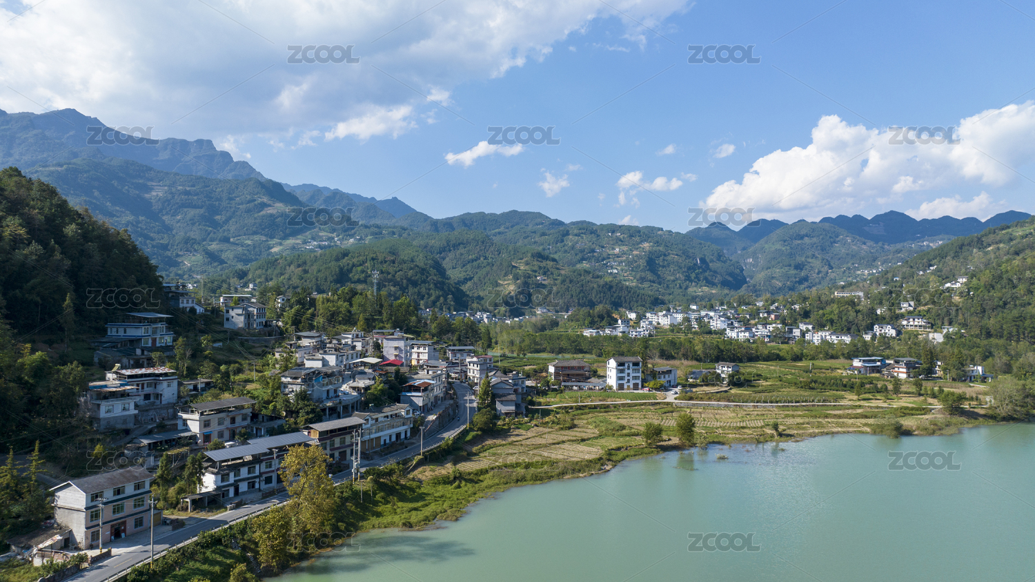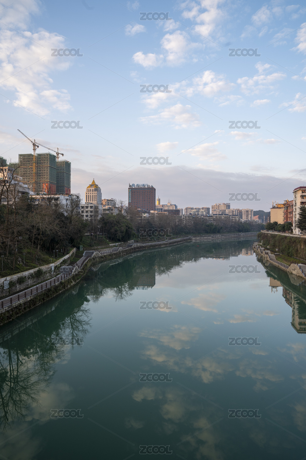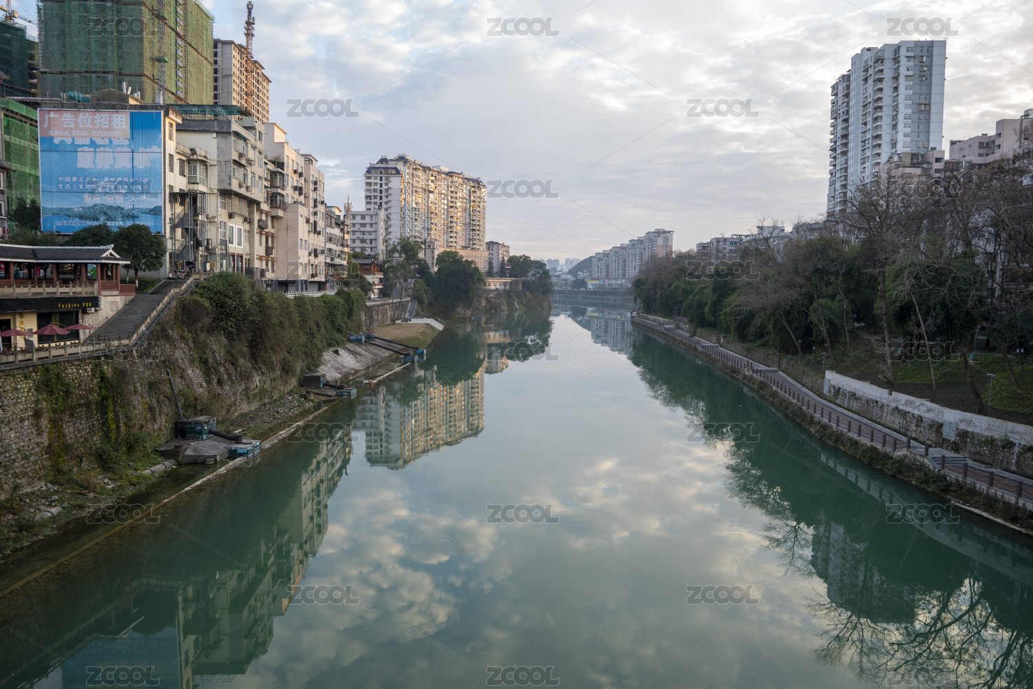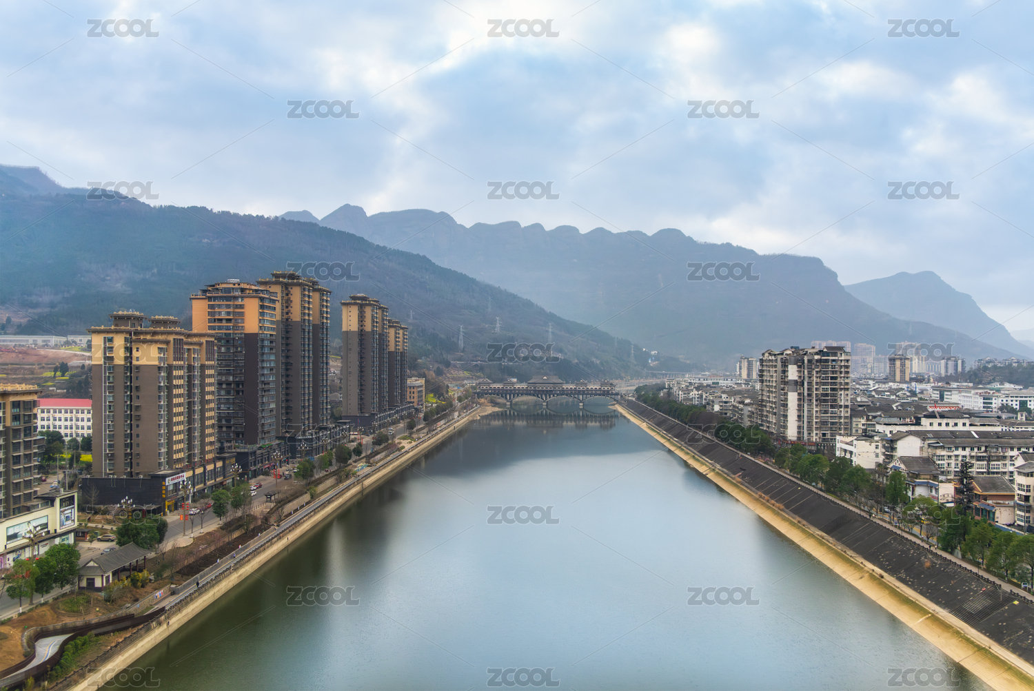 四川广元剑阁县大剑山下清江河两岸城市建筑