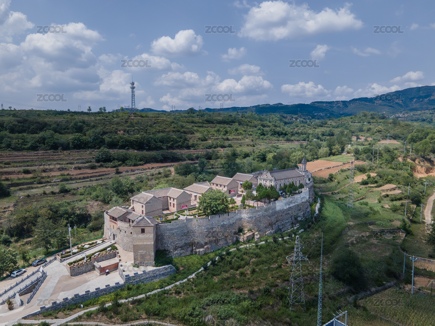 无人机航拍山西晋城泽州小寨玫瑰圣母院