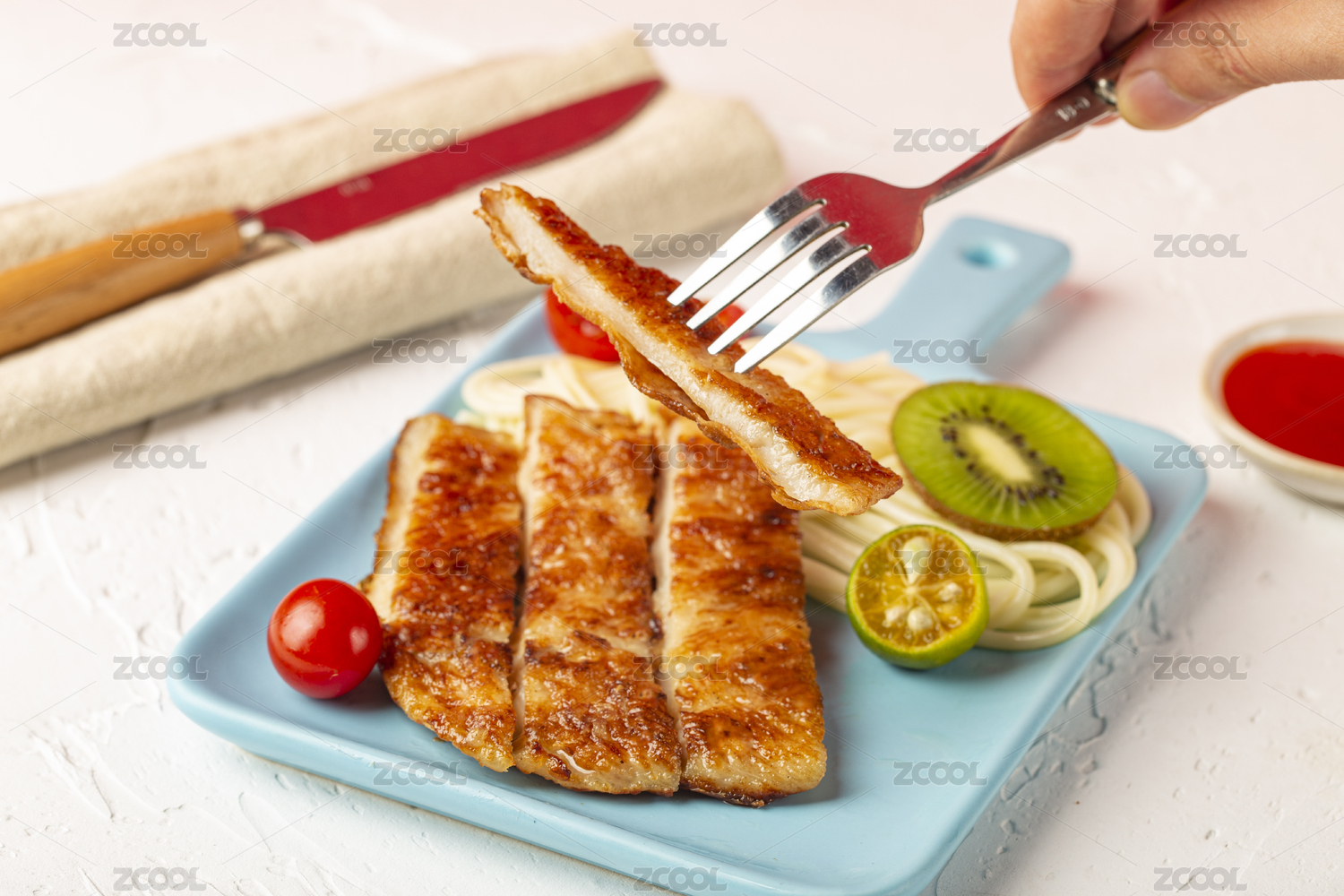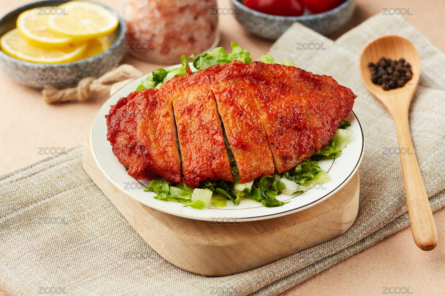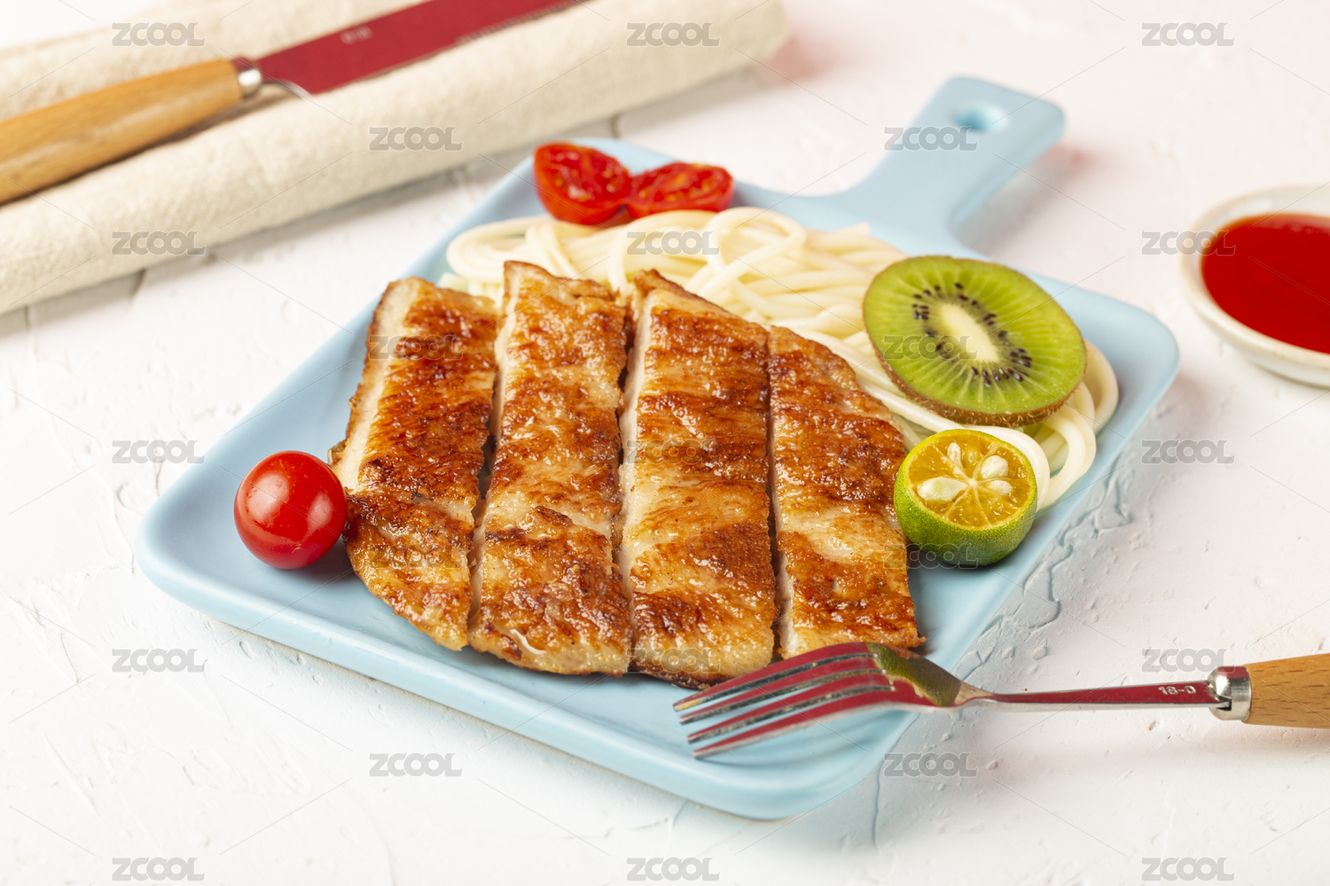 日式简餐香煎鸡排配蔬菜及米饭味增汤
