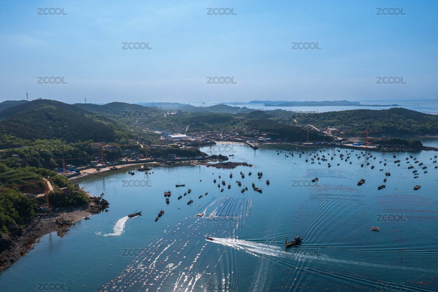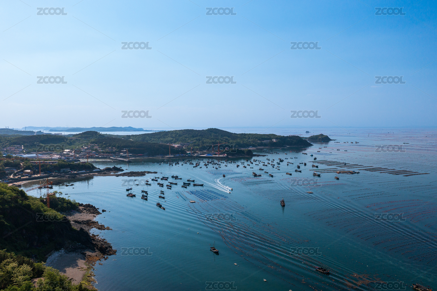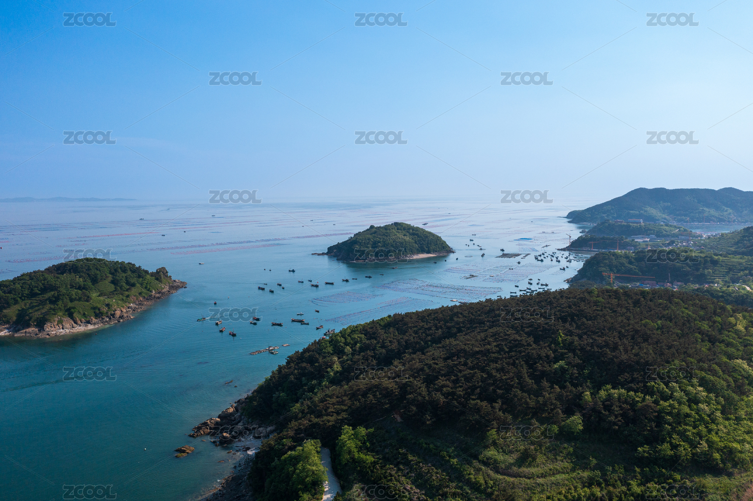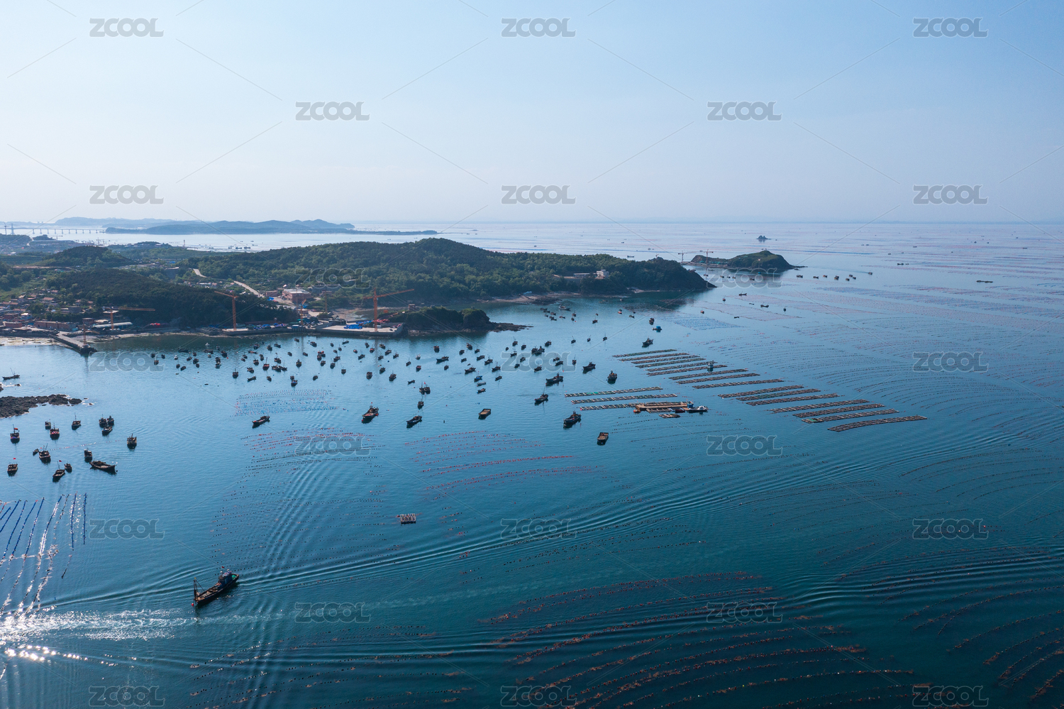 航拍大连市长海县长山岛海水养殖场
