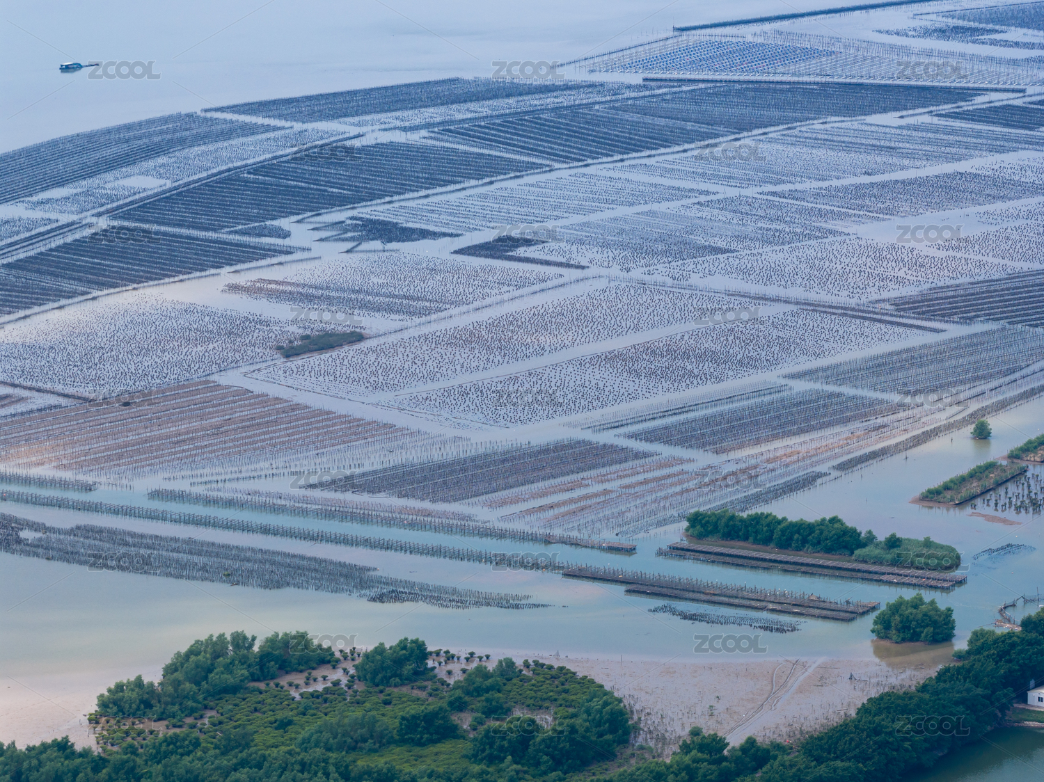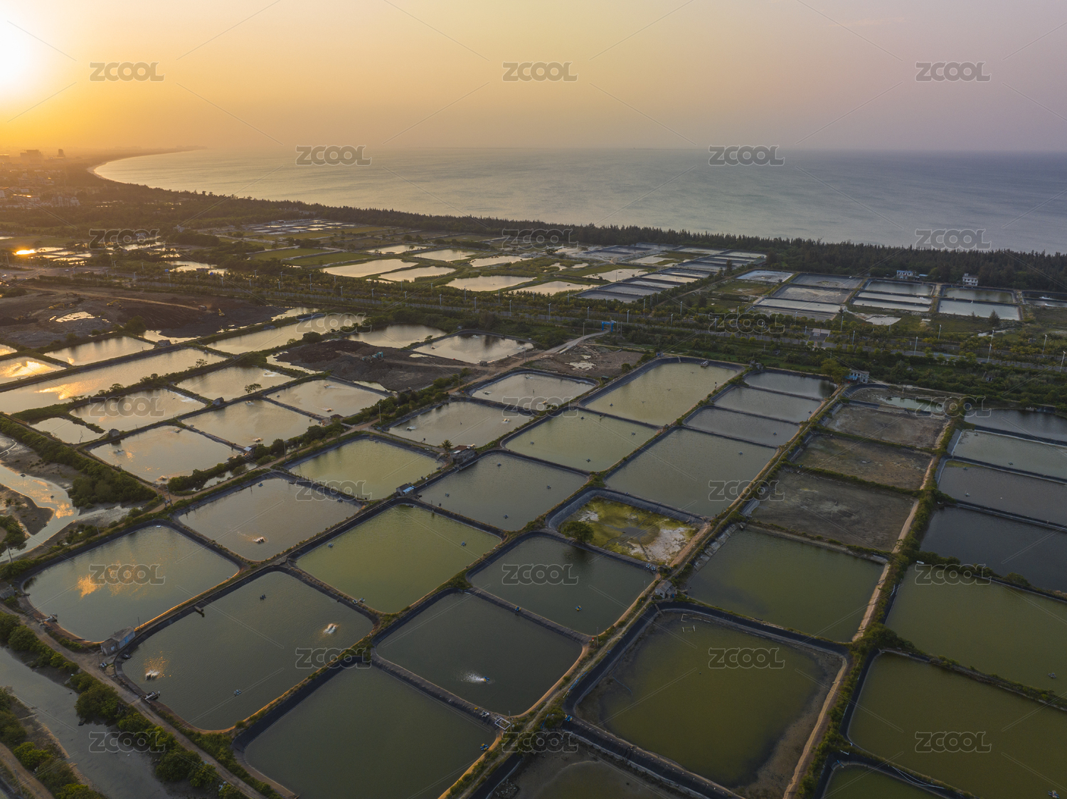 广东茂名电白沿海海水养殖场风光