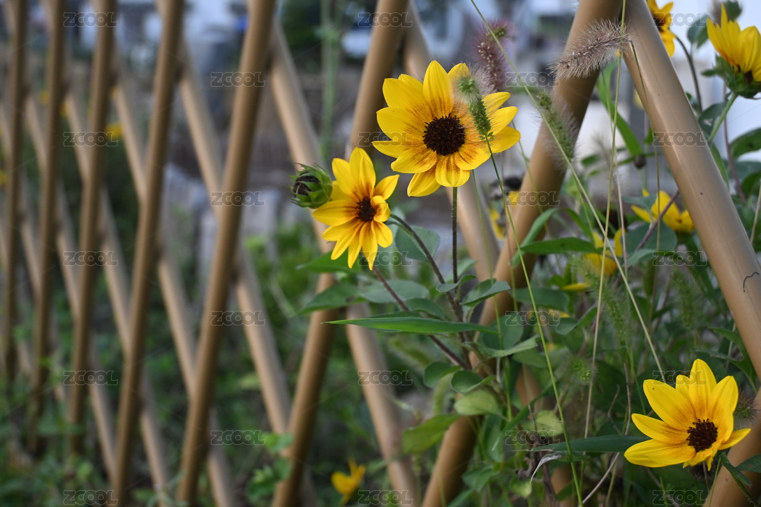 探出栅栏外的向日葵