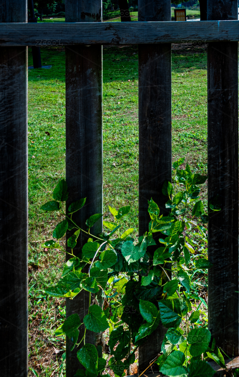 栅栏下的绿植