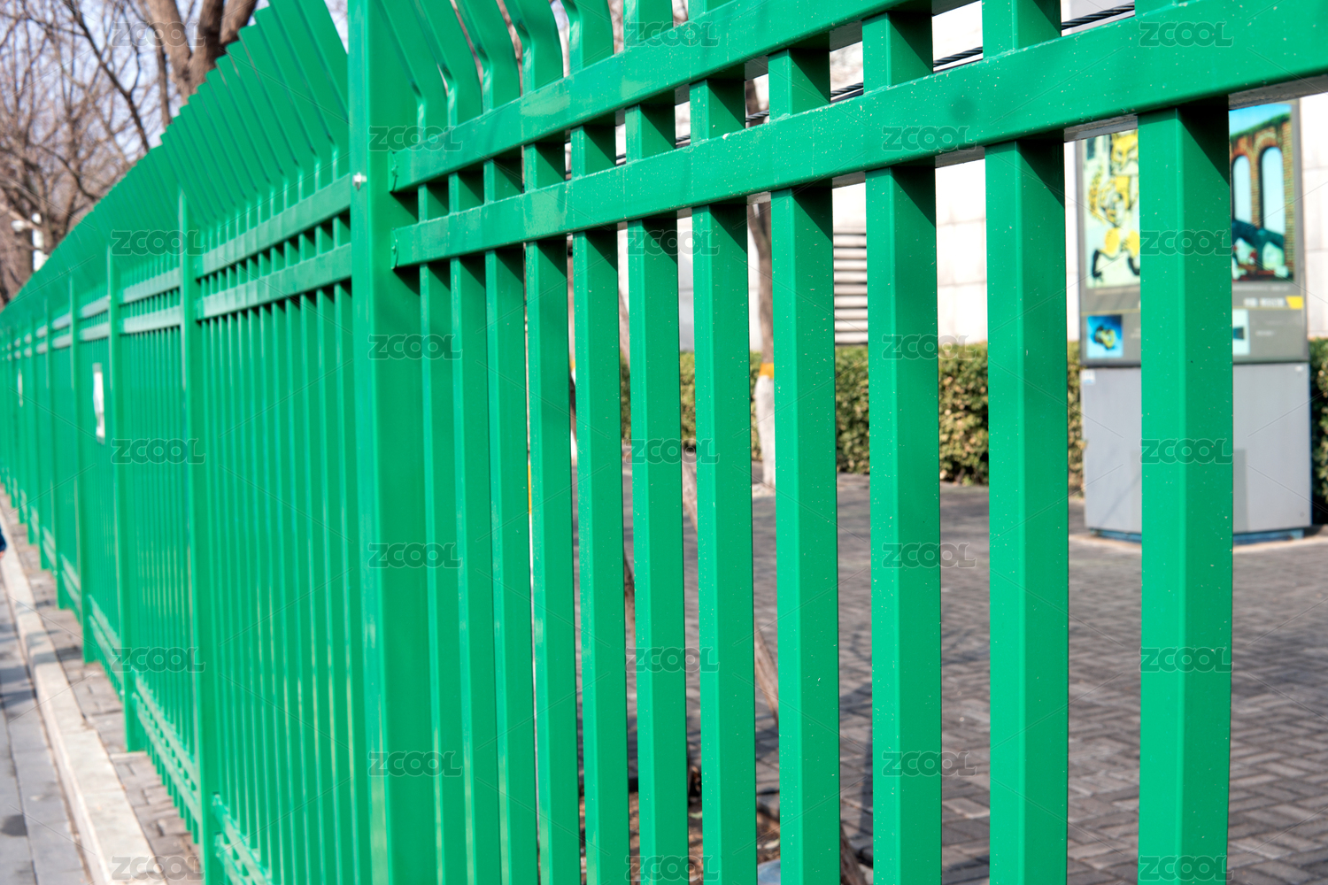 涂绿漆的栅栏远伸很远