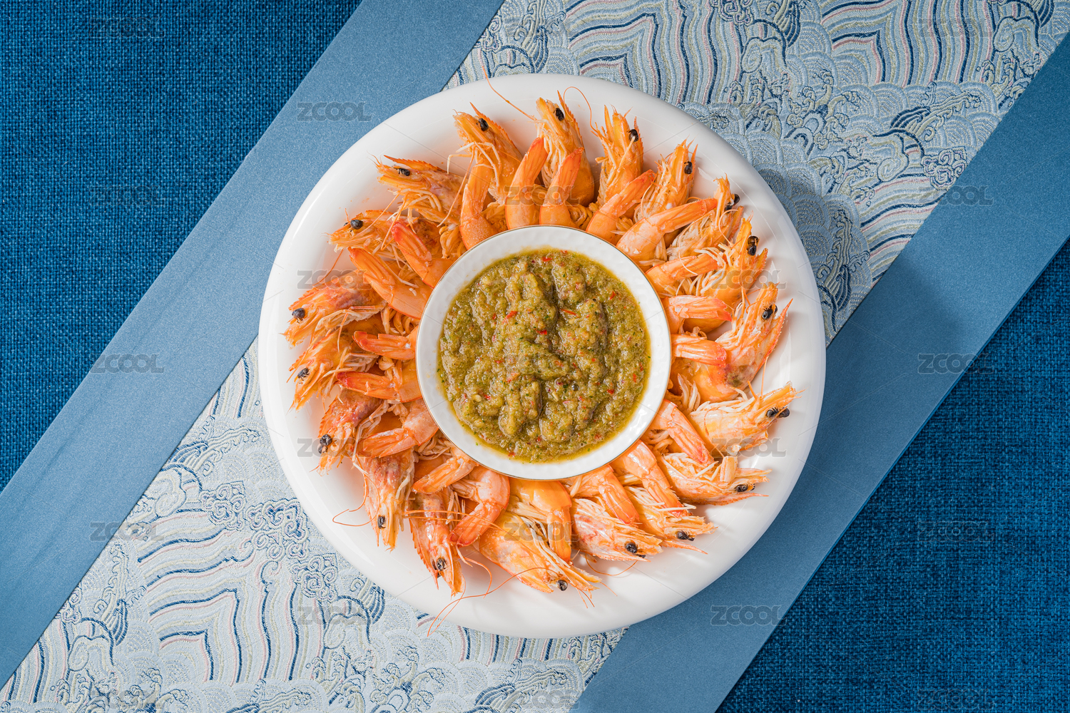 白盘子里的水煮虾白灼虾