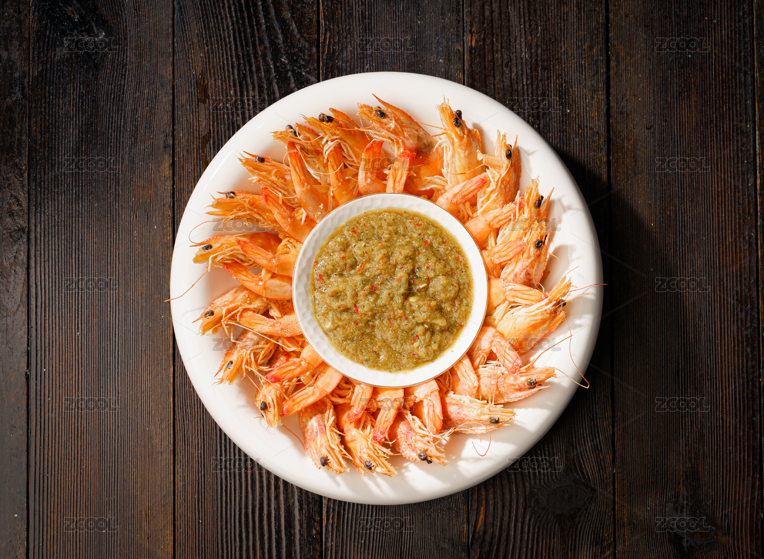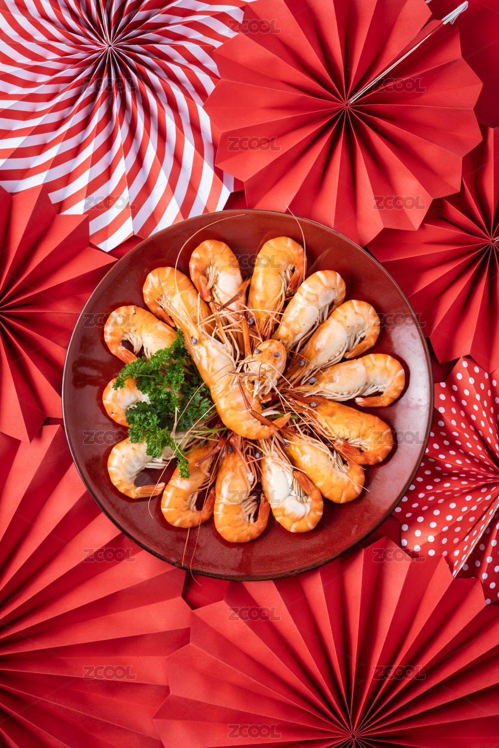 盘子里的水煮虾