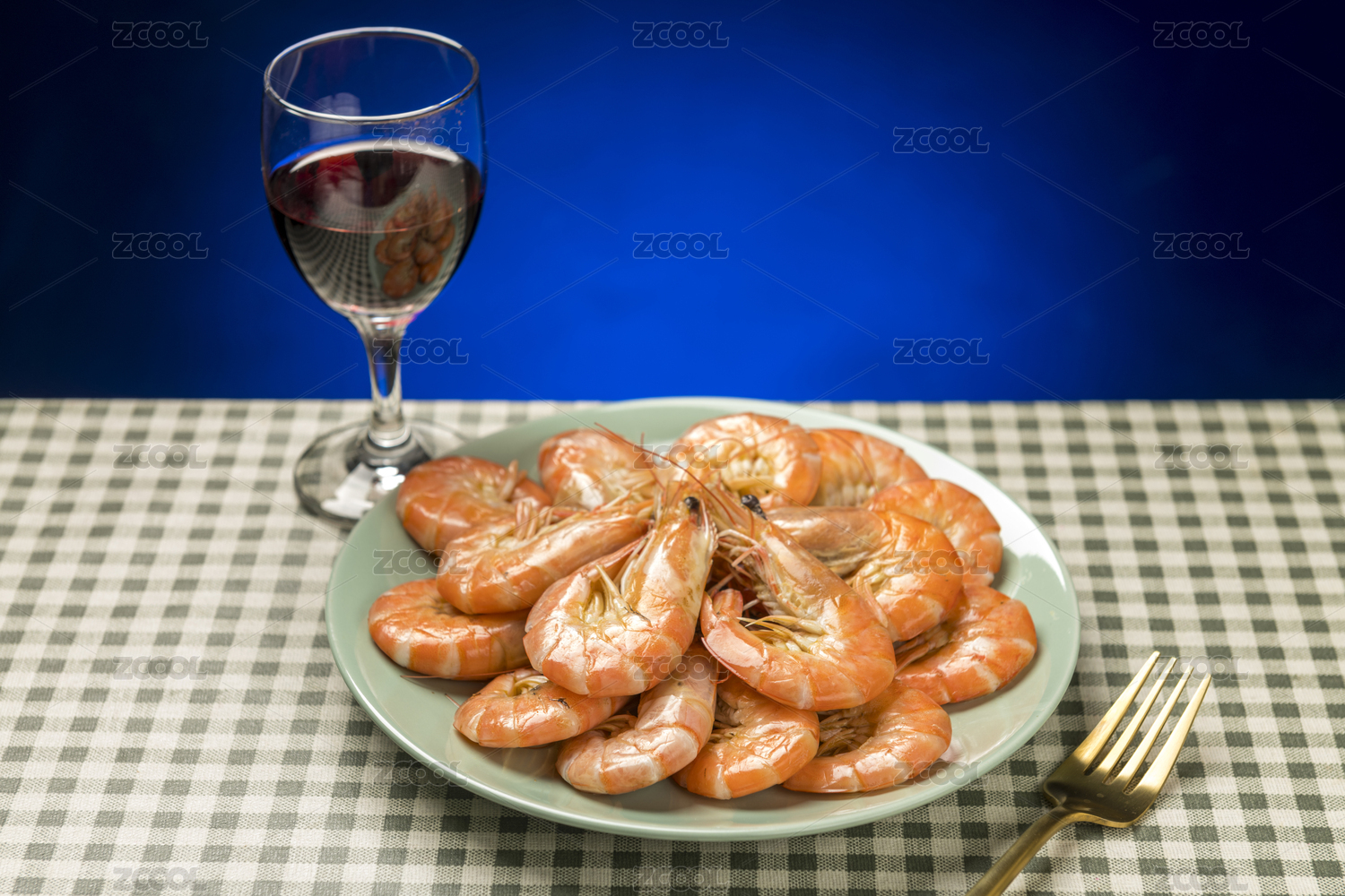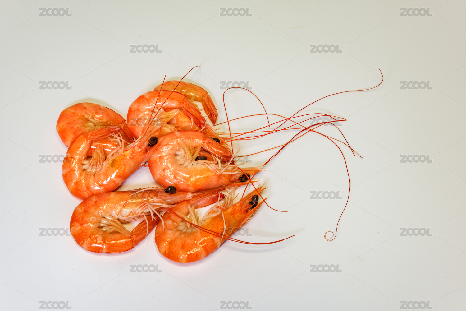 单色背景下的水煮虾